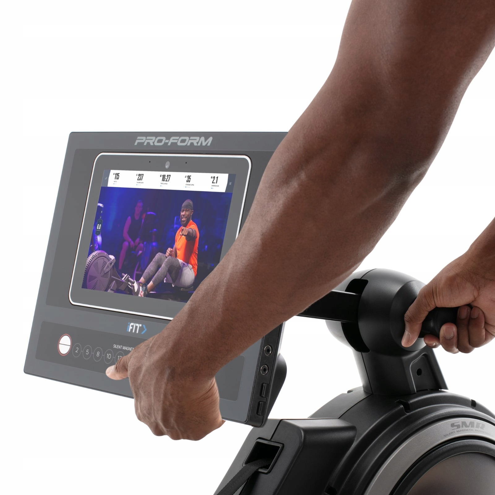 PRO R10 wyposażony jest w 10" ekran dotykowy HD, który umożliwia bezpośredni dostęp do konta iFIT. Po zalogowaniu się na ekranie pojawia się spersonalizowany plan treningowy, a urządzenie automatycznie dostosowuje jeden z 26 poziomów oporu do wybranego programu.