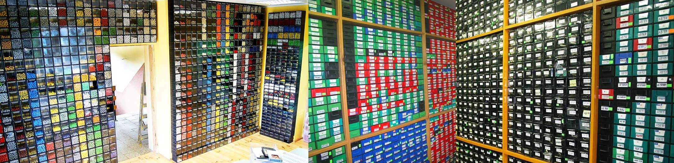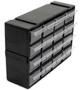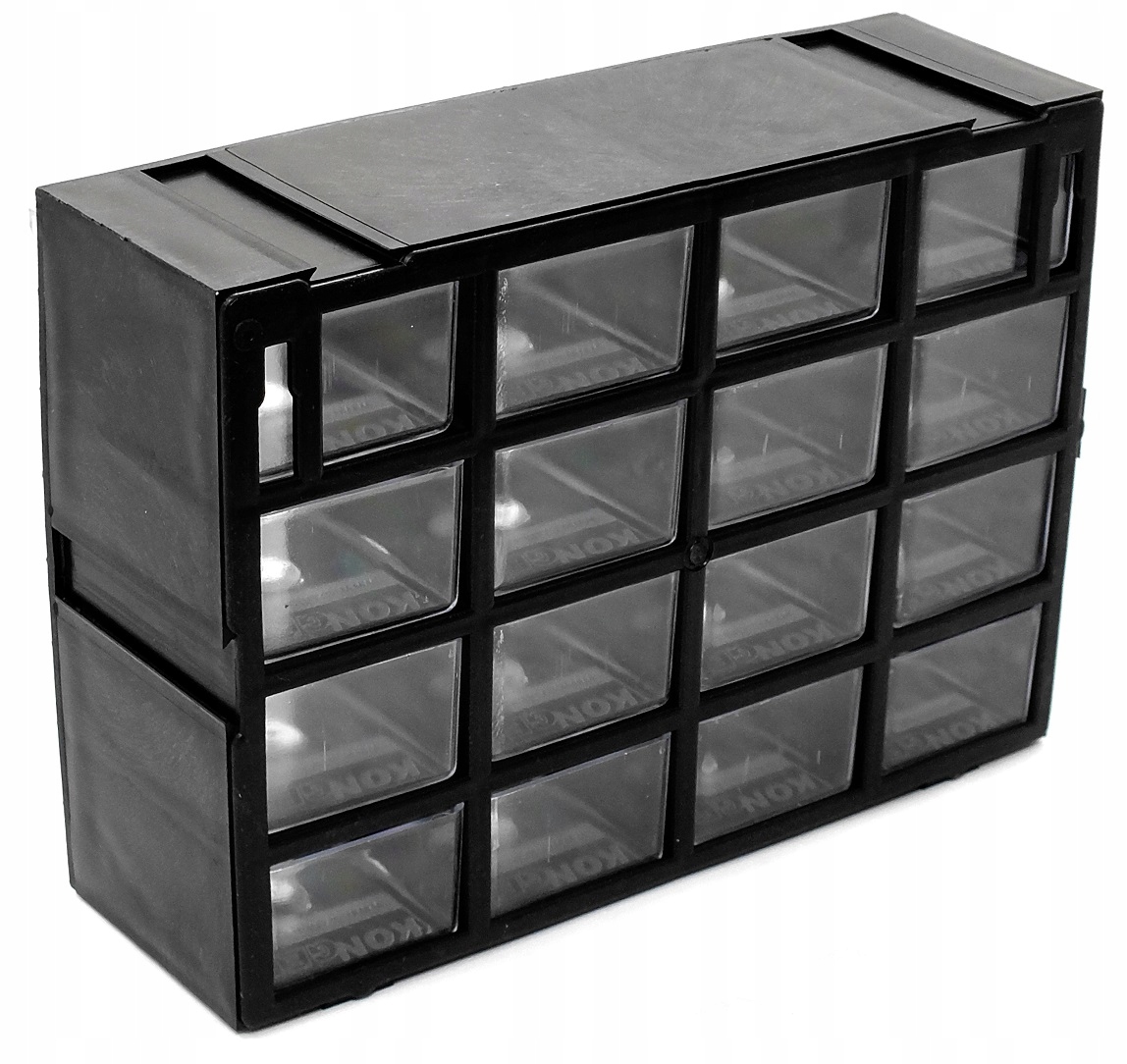 Modułowy system szufladek pozwalający budować zestawy, ścianki, złożone z czterech wielkości szufladek. Obudowa wykonana z polistyrenu ma zawsze ten sam wymiar zewnętrzny. System rowków pozwala łączyć moduły miedzy sobą. Wnętrze jest podzielone tak ze można w nie włożyć dwie, cztery, sześć lub dwanaście szufladek