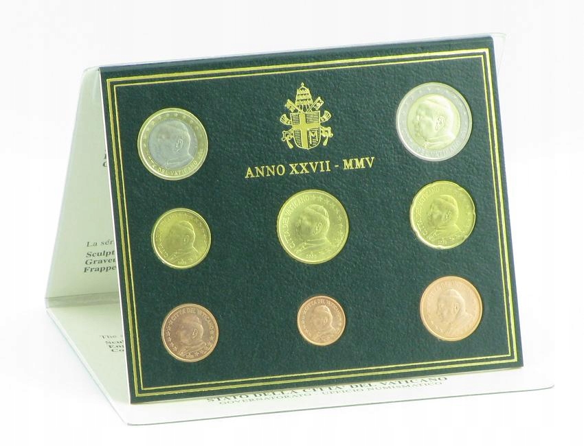 Zestaw zawiera 8 monet euro: od 1 cent do 2 euro
