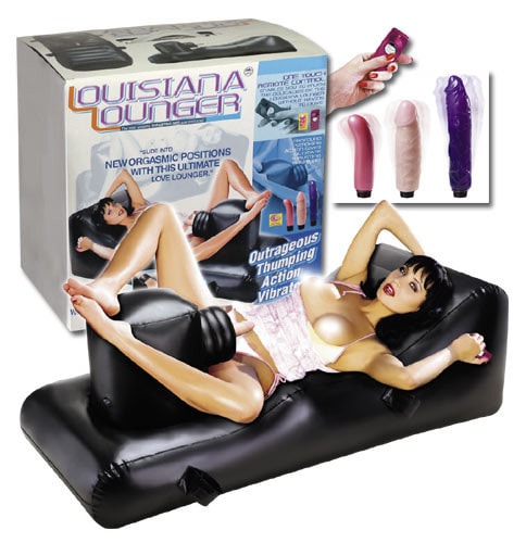 Luisiana Lounger jest wprost stworzona do sprawiania przyjemności. Jest to nadmuchiwane łóżko składające się z dwóch części: z właściwego łóżka oraz nadmuchiwanego graniastosłupa będącego źródłem zasilania. W opakowaniu znajdują się trzy różne wibratory i adaptery, które pozwalają korzystać z mnóstwa innych wibratorów normalnie dostępnych na rynku. Maszyna jest zasilana przez 8 baterii typu C (UM2), które nie są częścią zestawu. Zasięg dilda (odległość, na jaką się porusza) to około 5 cm z prędkością około 3 razy na sekundę. Przy otworze na baterie znajduje się wyłącznik główny, zdalne sterowanie działa na odległość do 10 m.