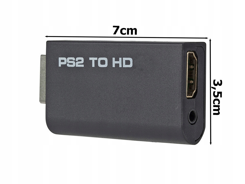 Dzięki adapterowi możnaużywać konsoli PlayStation 2 z nowoczesnymi telewizorami wyposażonymi w porty HDMI. Adapter umożliwia również korzystanie z wyjścia dźwięku jack 3,5 mm i pełnego wyjścia wideo HDMI. Ponadto obsługuje pełny cyfrowy dźwięk przez HDMI. Adapter ma również opcję podłączenia słuchawek lub głośników, co pozwala lepiej zanurzyć się w grze i cieszyć się dźwiękami podczas grania.