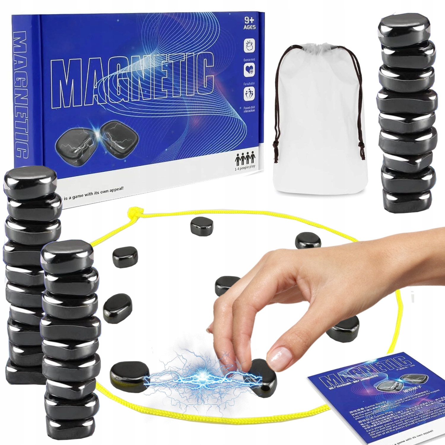 🎲Przebieg gry – Gracze na zmianę umieszczają kulki magnetyczne na planszy, dążąc do pozbycia się wszystkich swoich magnesów. Jeśli kulki przypadkowo się połączą, gracz musi zebrać je do ręki i kontynuować rozgrywkę.