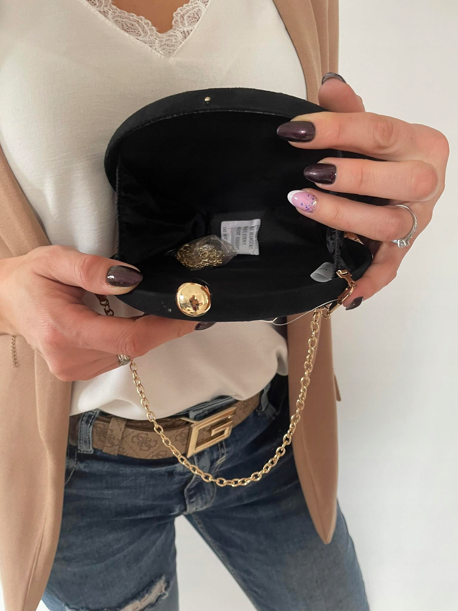 - dopinany łańcuszek pełniący rolę paska na ramię oraz dopinaną rączkę