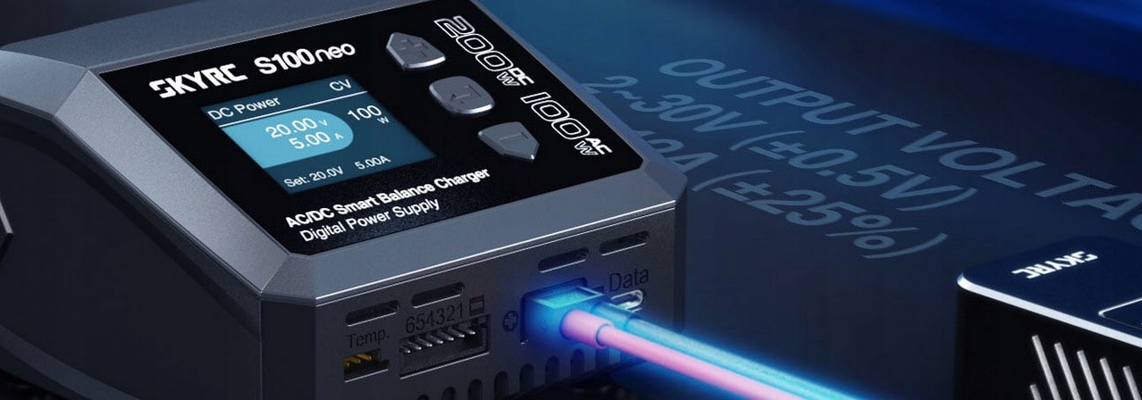 Bazując na renomowanym dziedzictwie ładowarki SkyRC e680, S100neo prezentuje imponującą moc 100W AC / 200W DC, łącząc wszechstronność z potężnymi możliwościami ładowania. Wyrazisty kolorowy ekran LCD poprawia doświadczenie użytkownika dzięki intuicyjnej nawigacji i łatwemu monitorowaniu. S100neo to nie tylko ładowarka, pełni również rolę zaawansowanego Zasilacza Cyfrowego, oferując precyzyjne i efektywne ładowanie z niezrównaną dokładnością zarówno w trybie Stałego Prądu (CC), jak i Stałego Napięcia (CV). Na czele technologii ładowania RC, SkyRC's S100neo łączy nasze sprawdzone osiągi z innowacyjnymi funkcjami, doskonale zaspokajając potrzeby coraz bardziej wymagających entuzjastów modeli RC.
