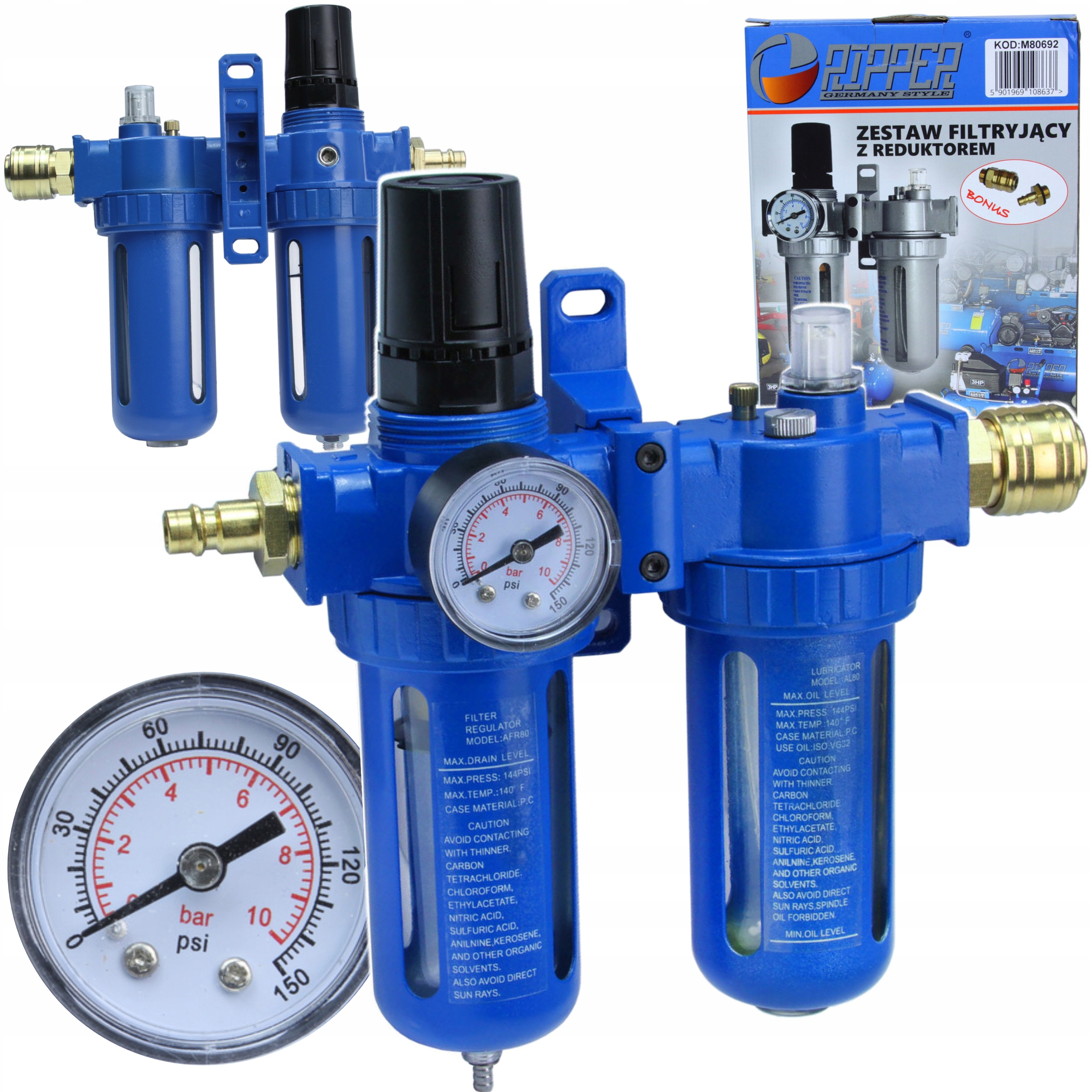 ✅ZASTOSOWANIE: redukuje i utrzymuje stałe ciśnienie robocze, które jest niezbędne do prawidłowego działania, np. pistoletów lakierniczych, kluczy udarowych. Filtruje, odwadnia, odoleja i oczyszcza powietrze z wszelkich zanieczyszczeń. Dodatkowo smarownica naoleja urządzenie
