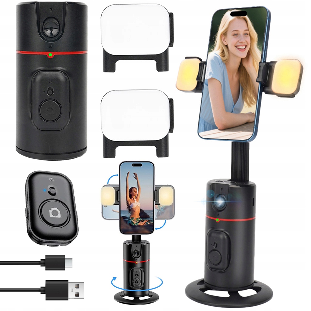 Inteligentny statyw z śledzeniem twarzy 360° - Idealny do tworzenia contentu na TikTok, Instagram i live streaming. Zaawansowana technologia AI zapewnia płynne i precyzyjne śledzenie ruchu w dwóch trybach (stojącym i siedzącym), zawsze utrzymując Cię w centrum uwagi.