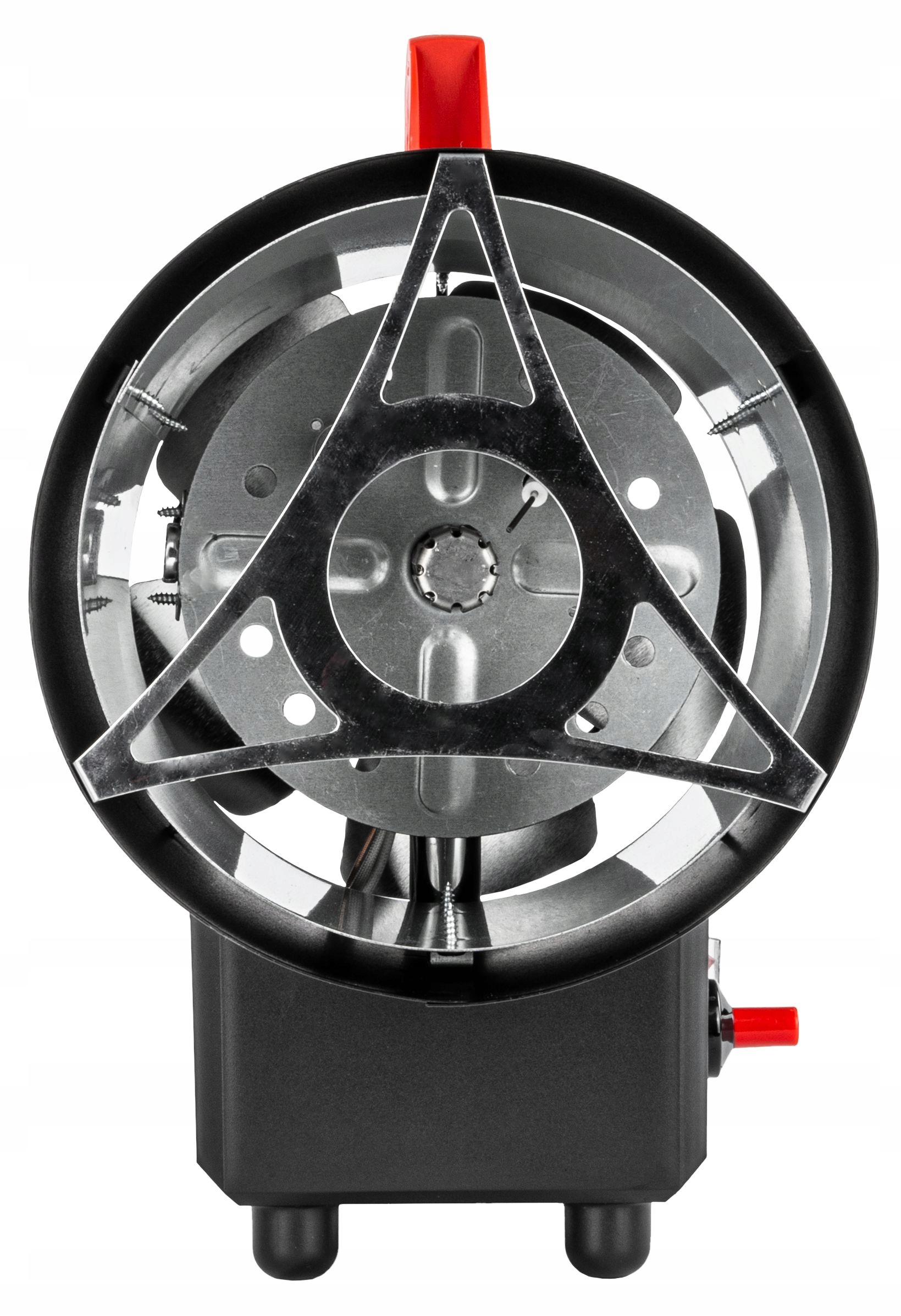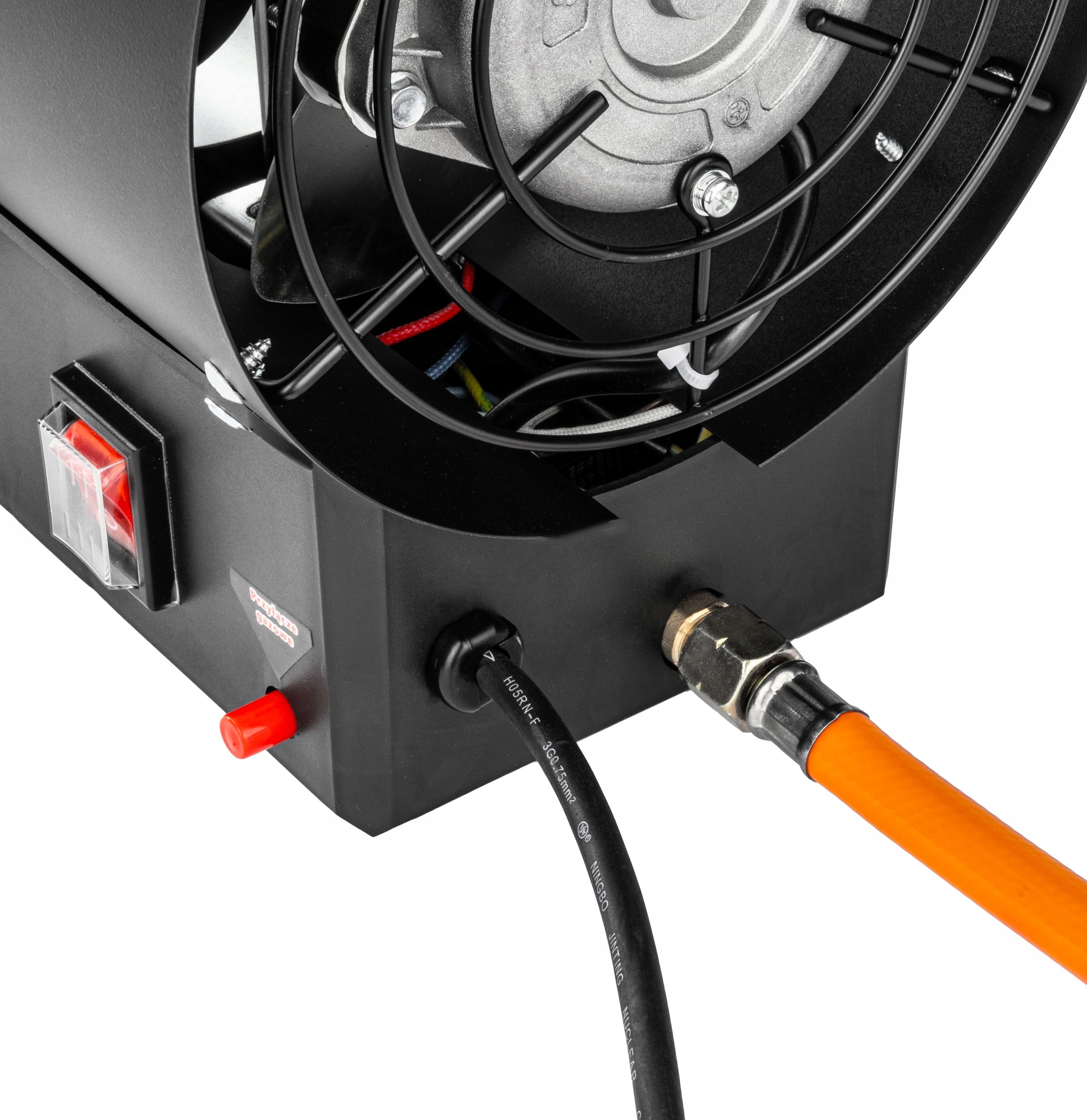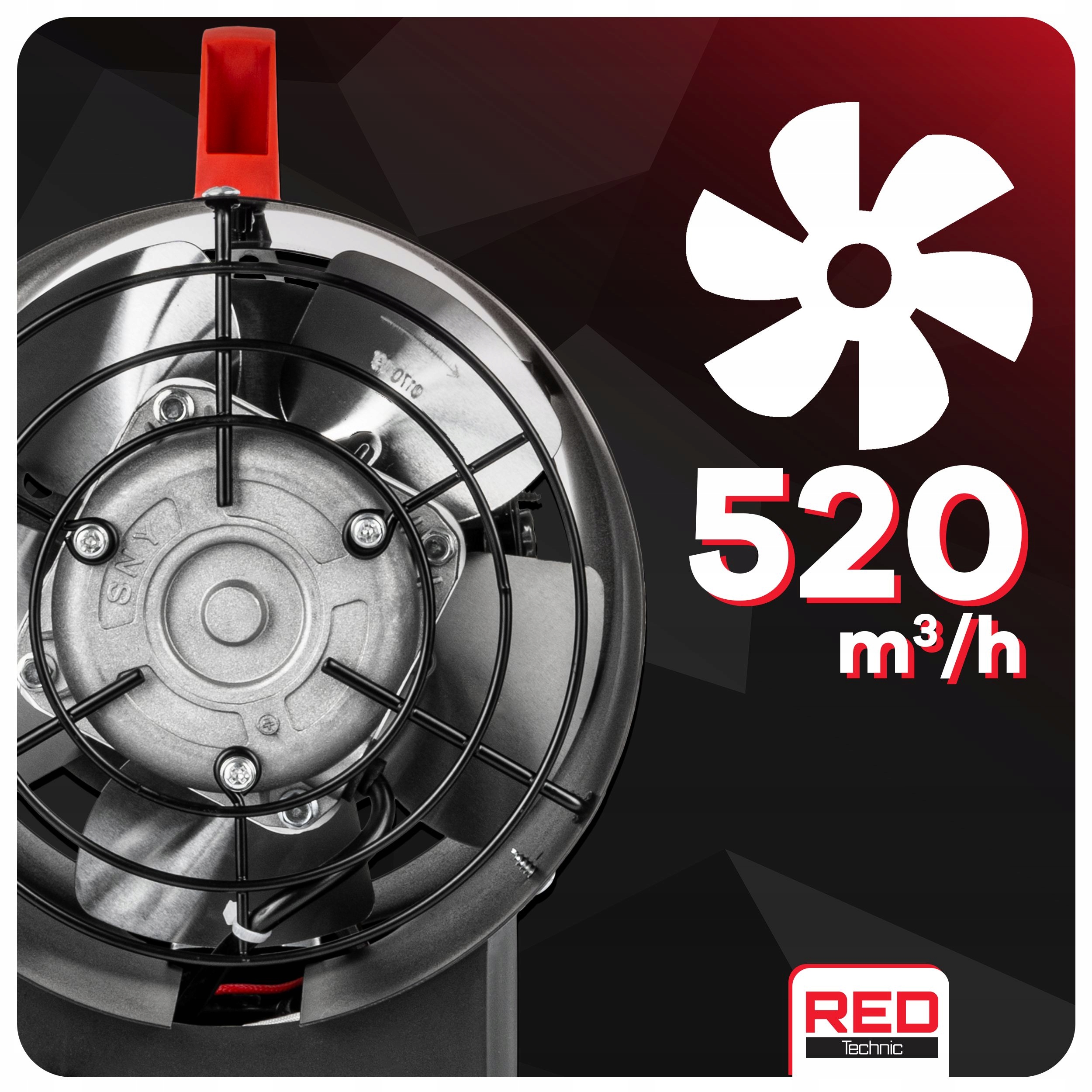 Nagrzewnica ma 5-łopatkowy wentylator o przepływie 520 m³/h, co pozwala na szybkie rozprowadzanie ciepła w dużych przestrzeniach.