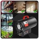 Urządzenie osiąga temperatury od 60°C do 300°C, co pozwala szybko ogrzać duże przestrzenie.