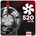 Wbudowany 5-łopatkowy wentylator o wysokiej wydajności zapewni przepływ powietrza do 520 m³/h.
