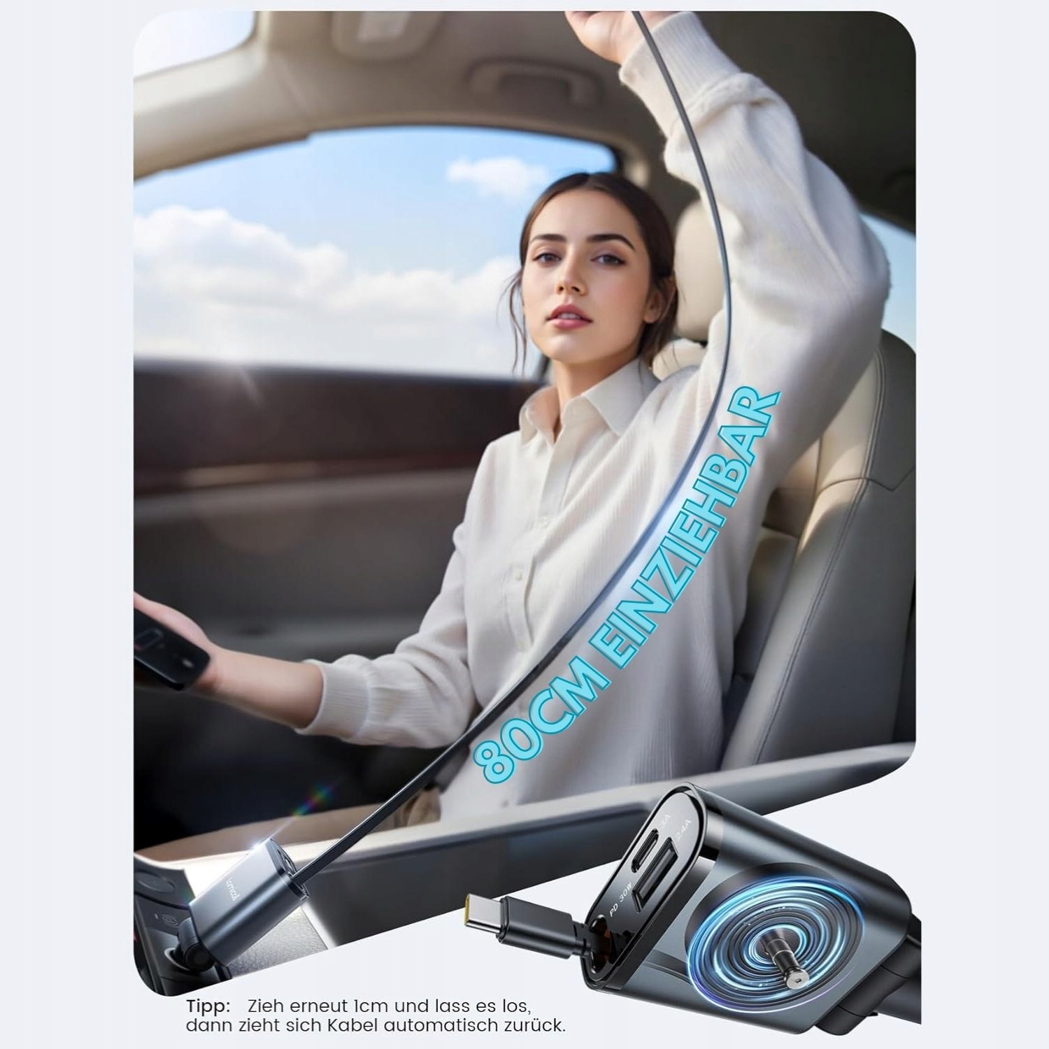 Patented Retractable System – opatentowany system automatycznego zwijania kabli dla wygody i porządku w aucie.