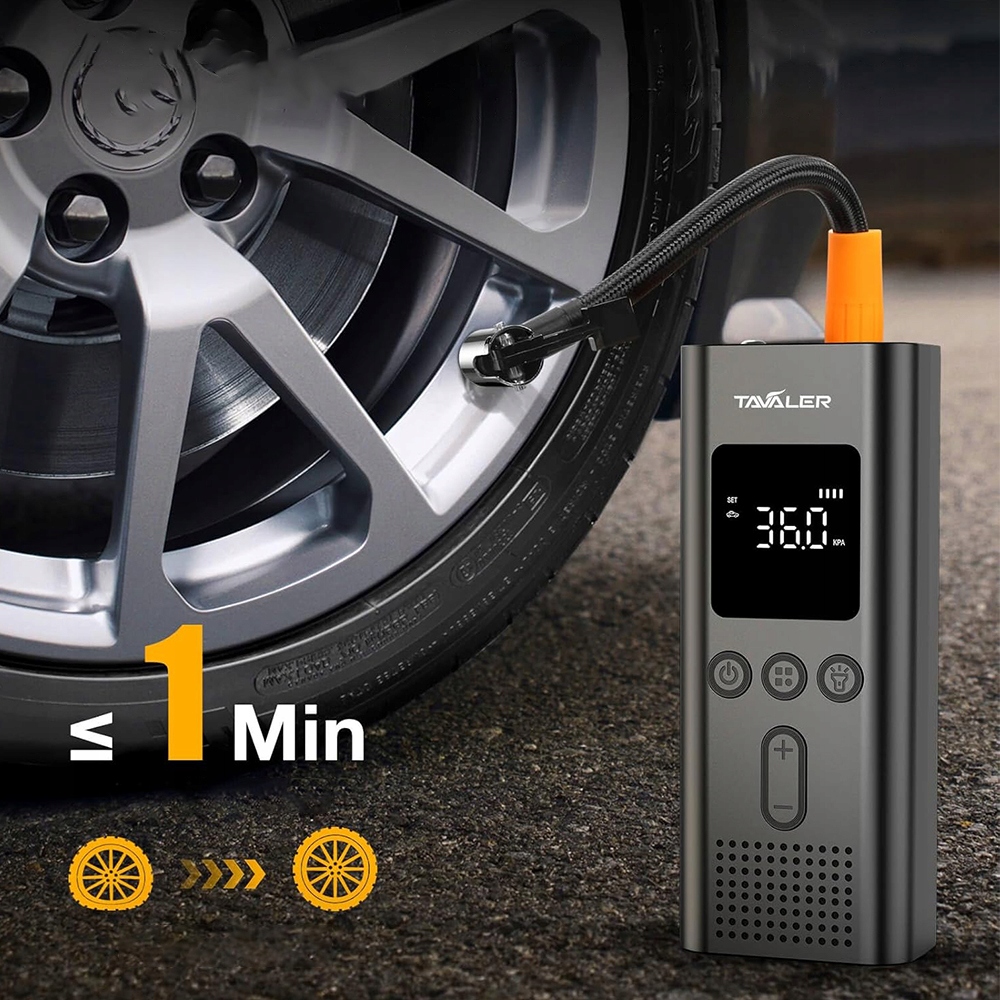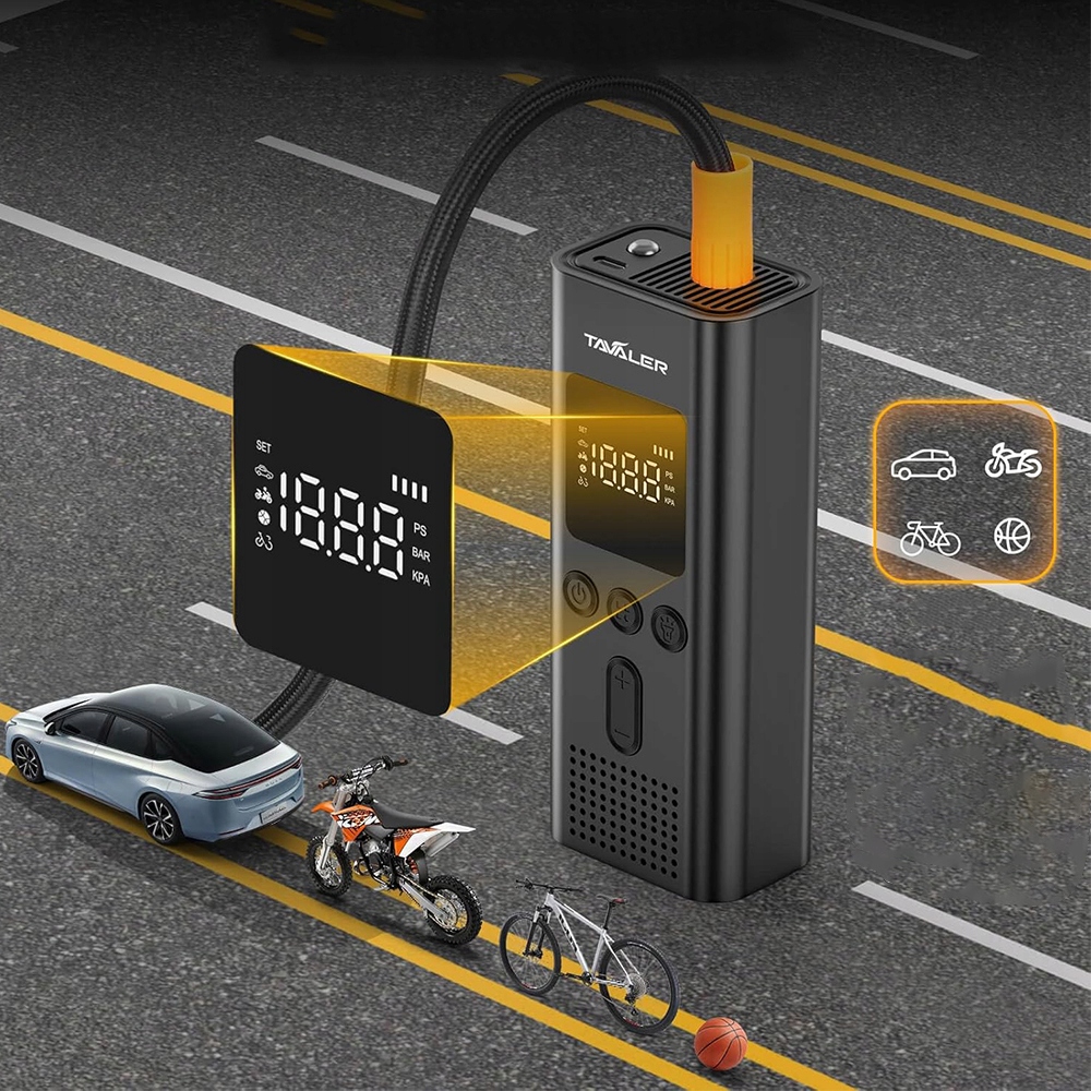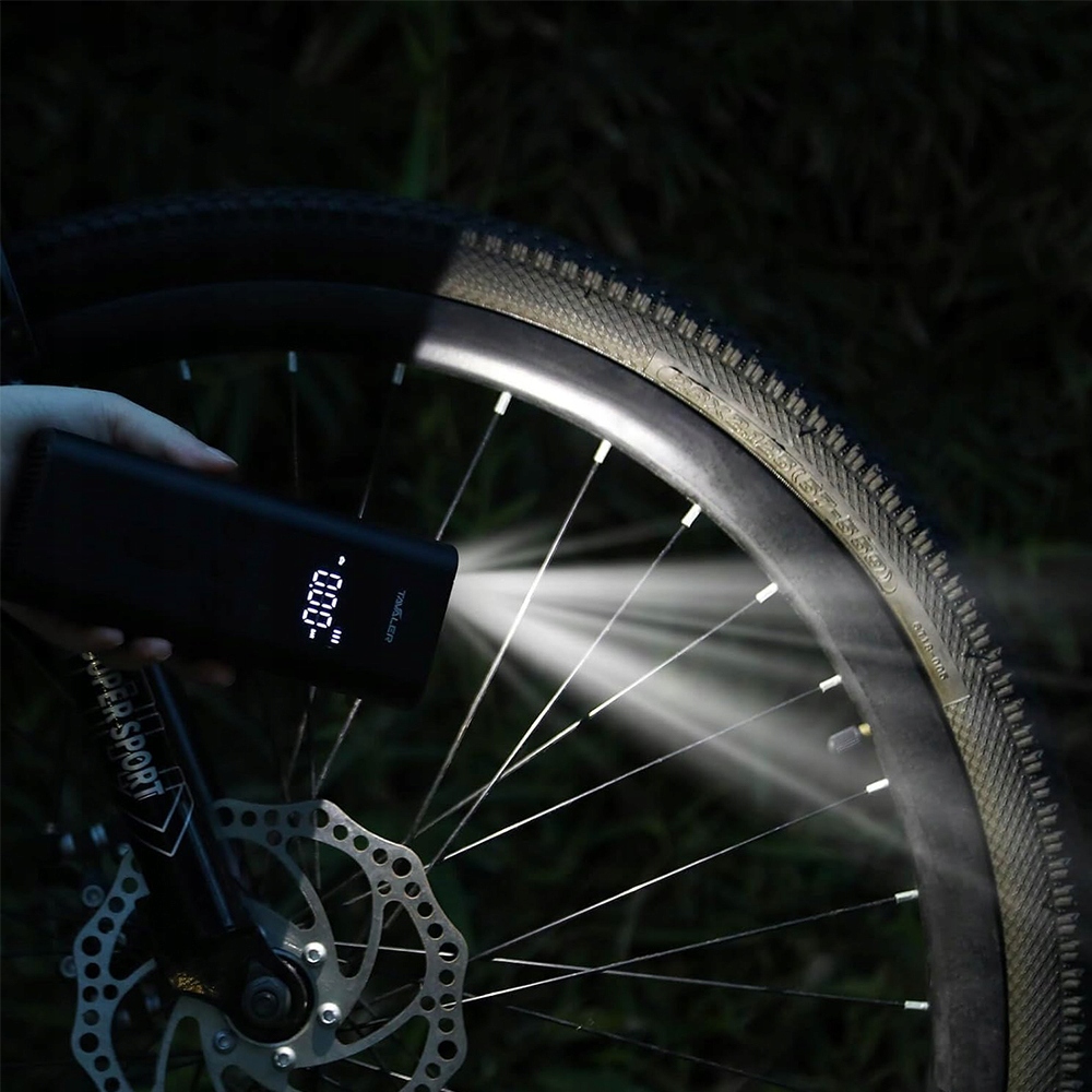 Pompa Tavaler ma wbudowany akumulator 4000mAh, który po pełnym naładowaniu może pozostawać w stanie gotowości nawet 6 miesięcy! Może pompować opony samochodowe (od 0 do 2,5 bara) i zapewniać powietrze dla całego zespołu rowerowego! 🔌🔋