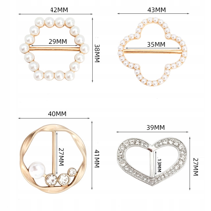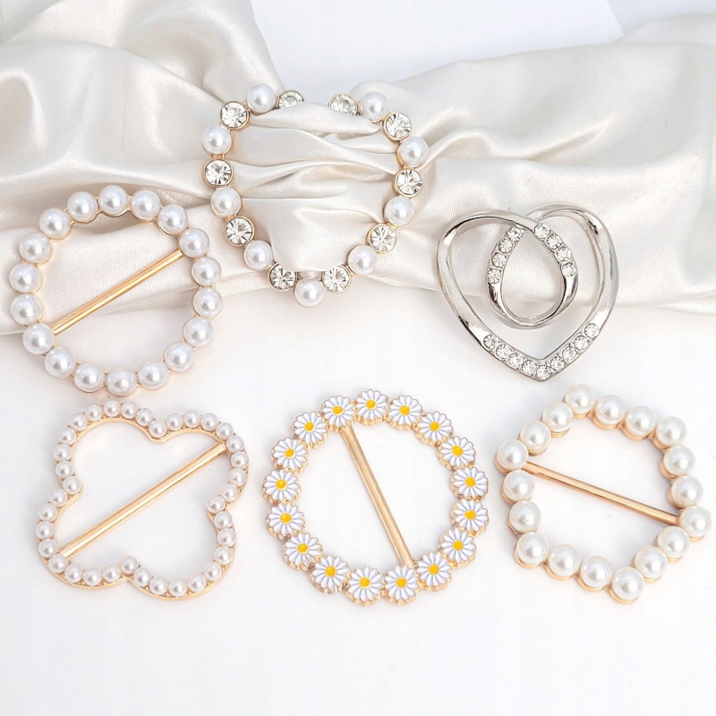 ✳️W zestawie znajduje się 8 klamr, broszek w różnych wzorach i kształtach, w kolorze srebrnym i złotym.
