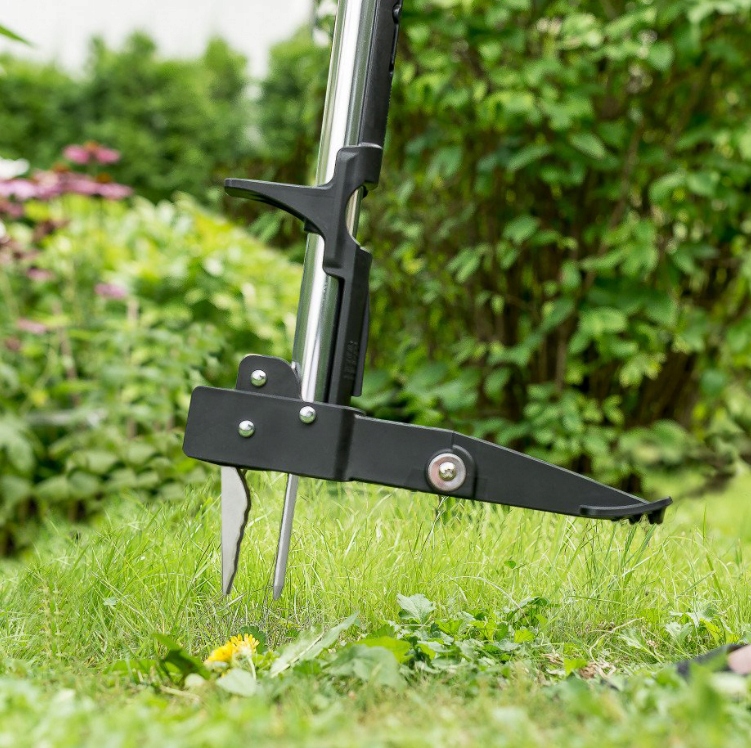 Wycinak do chwastów to kolejne narzędzie, które może być umieszczone na długim trzonku, by można było używać go na stojąco. Jest idealny do usuwania pojedynczych chwastów z trawnika i spomiędzy roślin, także tych bardziej bujnych, na przykład na grządkach ogórka czy cukinii.