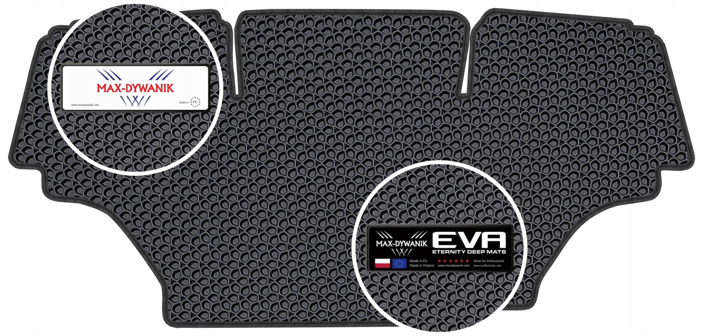 Etykiety 3D zostały umieszczone na specjalnie zaprojektowanych mocowaniach Max-Dywanik, które, podobnie jak dywaniki, są odporne na wodę, błoto i warunki atmosferyczne. Na dywaniku zamontowane są 2 etykiety, które sygnują dywaniki i potwierdzają, że zostały wyprodukowane przez polską firmę MAX-DYWANIK i pochodzą z najnowszej linii EVA ETERNITY DEEP MATS.