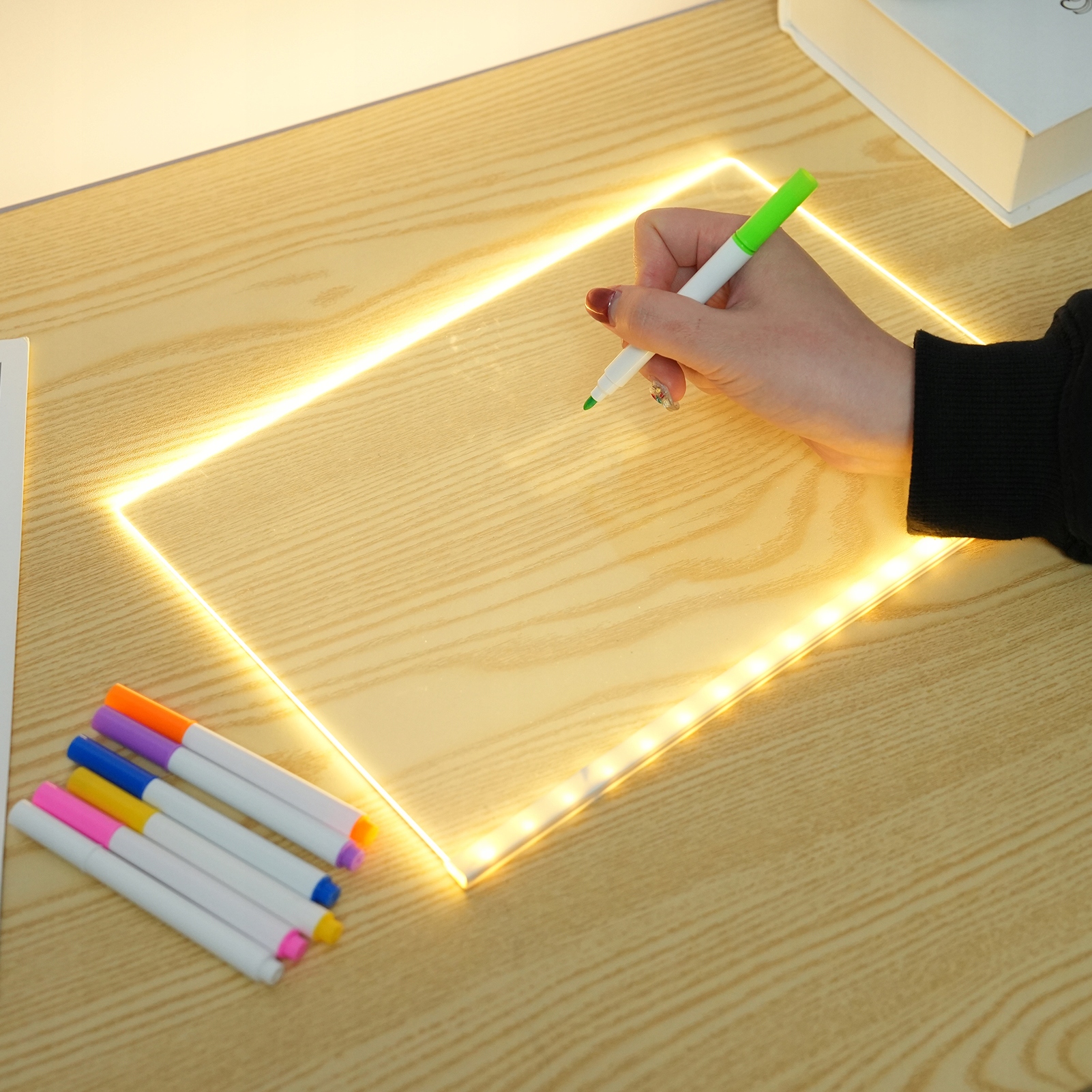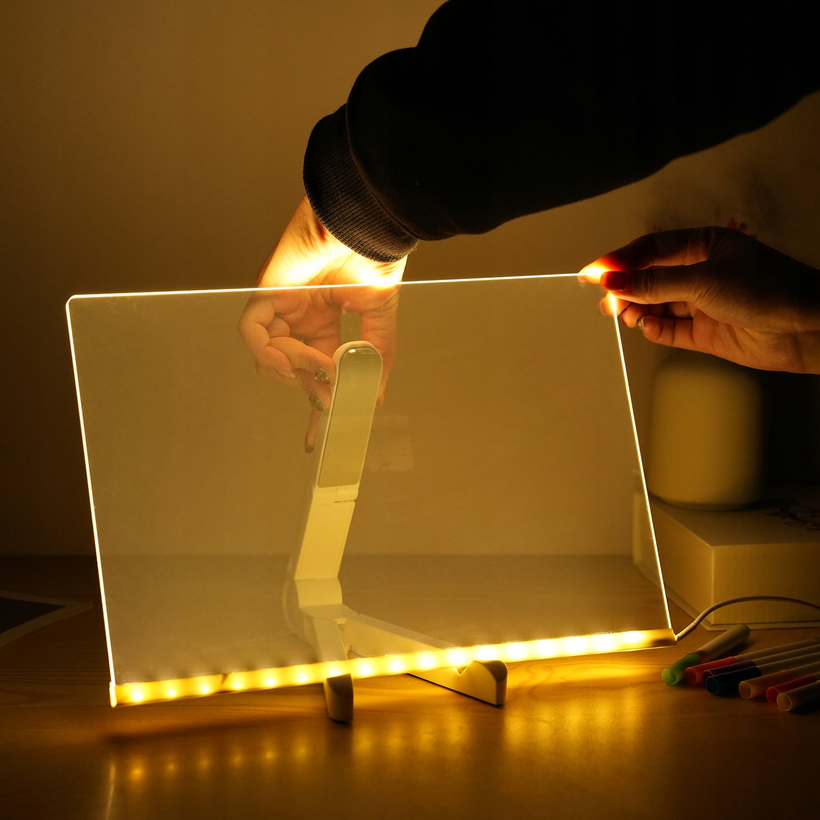 1. 【Podświetlana akrylowa tablica pisania akrylowego】 Ta LED iluminowana akrylowa płyta do pisania jest wszechstronnym narzędziem, które można użyć jako tablica komunikatów stacjonarnych, DIY Children \ U0027S Docting Board lub Daily Planner. Jest idealny do zapisywania szybkich notatek, szkicowania lub planowania dnia.