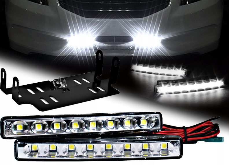 | CENA ZA KOMPLET | 2X LAMPY DO JAZDY DZIENNEJ | 2X UCHWYT MOCUJĄCY | ŚRUBKI MONTAŻOWE |