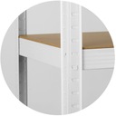 Funkcjonalny i stabilny regał magazynowy w kolorze białym, który znakomicie sprawdzi się w: