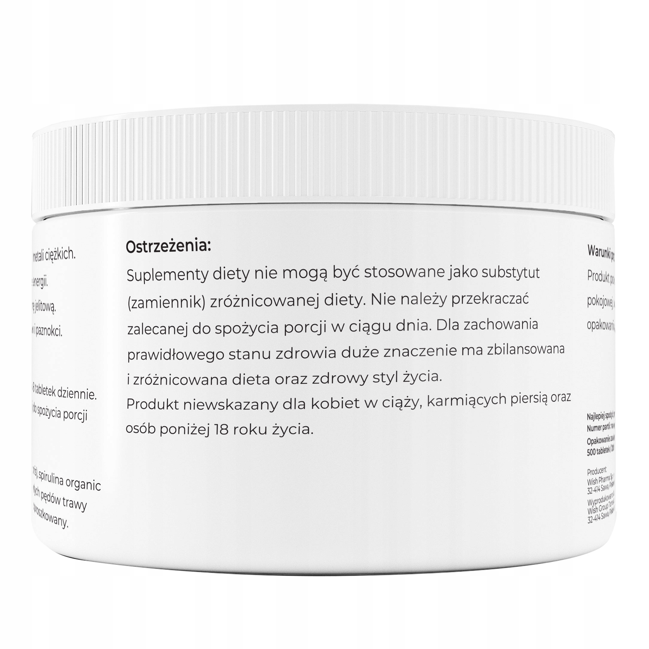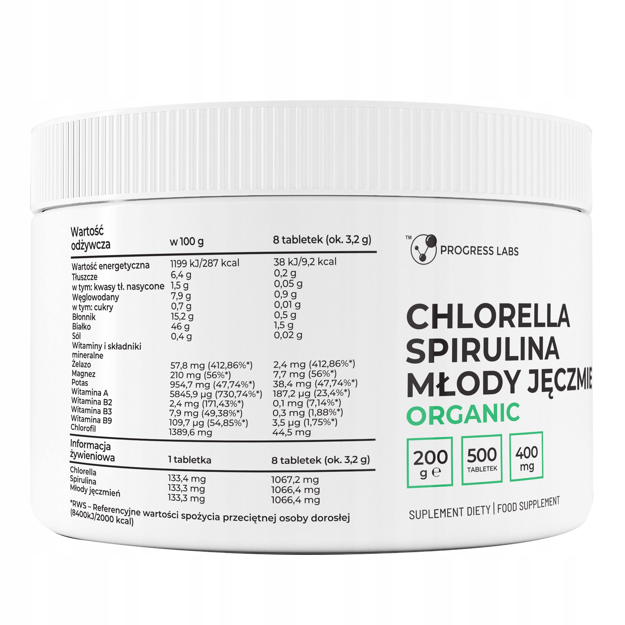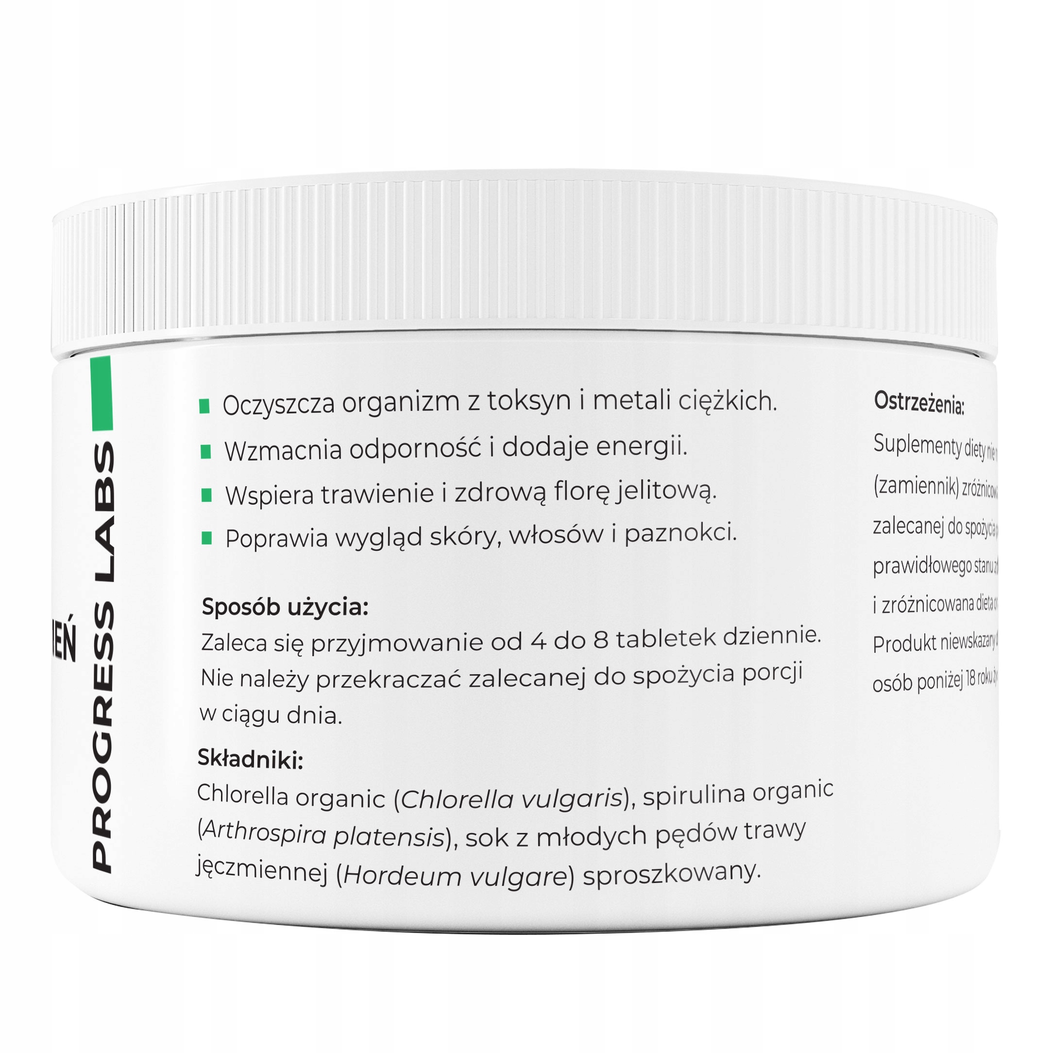 SKŁADNIKI: Chlorella (Chlorella Vulgaris), spirulina organic (Arthrospira platensis), sok z młodych pędów trawy jęczmiennej (Hordeum vulgare) sproszkowany