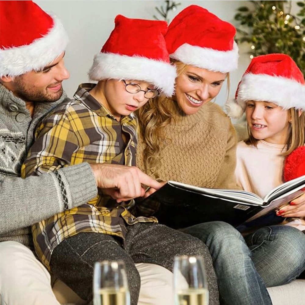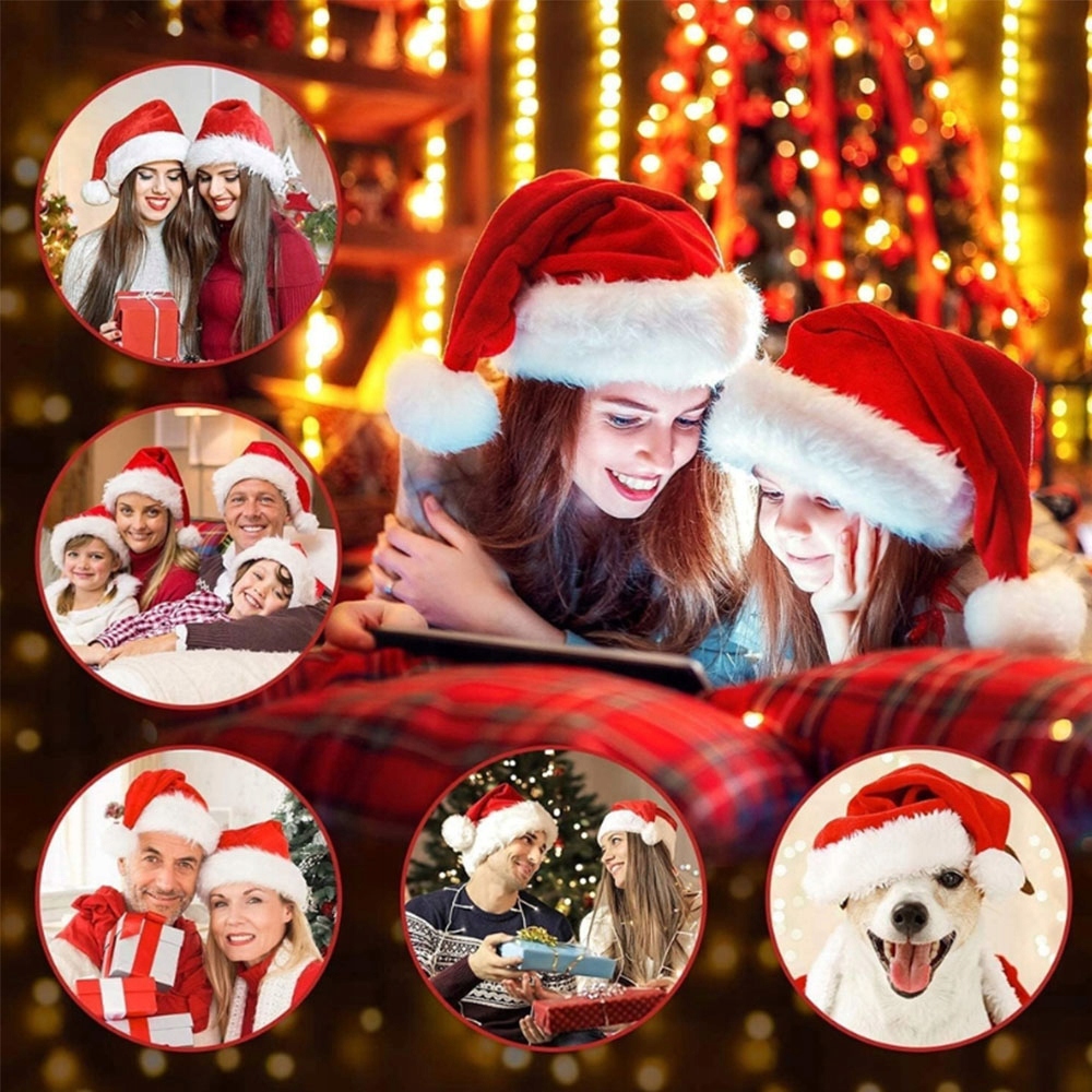 Czapka Mikołaja wykonana z wysokiej jakości pluszu. Tkanina Red Velvet i podwójna wygodna podszewka sprawiają, że czapki Mikołaja dla dorosłych są miękkie i przyjemne w dotyku. Miękka i wygodna tkanina chroni głowę i włosy bez podrażnień lub potu! Można prać ręcznie, nie powoduje alergii i jest przyjazna dla środowiska. Ty i Twoja rodzina pokochacie ją.