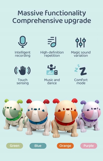 Jedną z największych atrakcji jest możliwość nagrywania własnego głosu i jego odtwarzania przez pieska. Dzieci mogą przygotować zabawne komunikaty, przywitania czy własne komendy – a potem usłyszeć, jak ich pupil je powtarza. To świetna funkcja rozwijająca kreatywność i wyobraźnię.