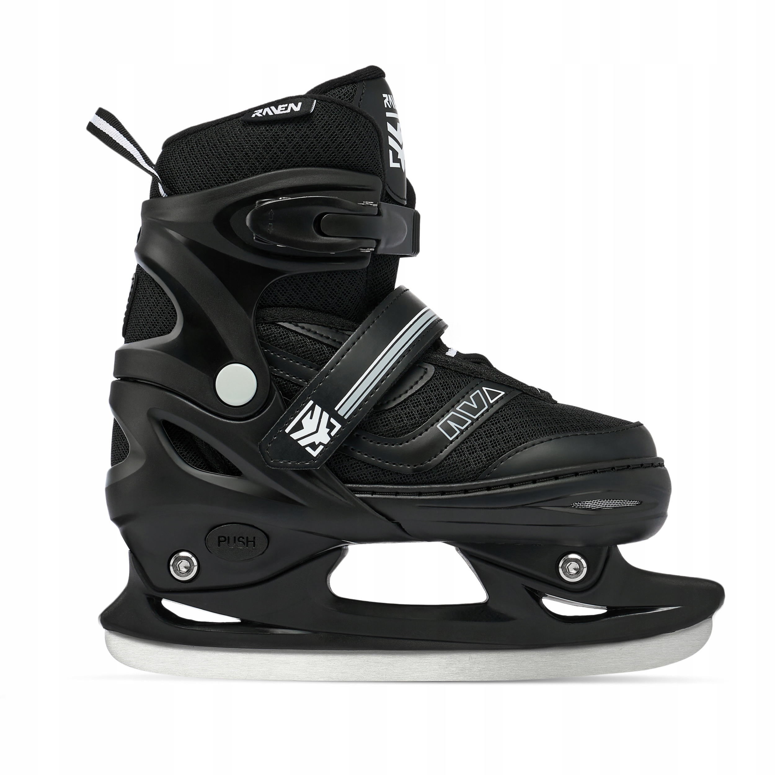 Шнурки, пряжка с зубчатым ремнем и защелка они обеспечивают правильное натяжение и надежное удержание стопы в обуви, предотвращают движение ноги и гарантируют безопасную езду. Защелки в роликах Raven имеют кнопку, которая предотвращает их расстегивание во время вождения. Ремешок на липучке позволяет удерживать шнурки, останавливая их от случайного решения.