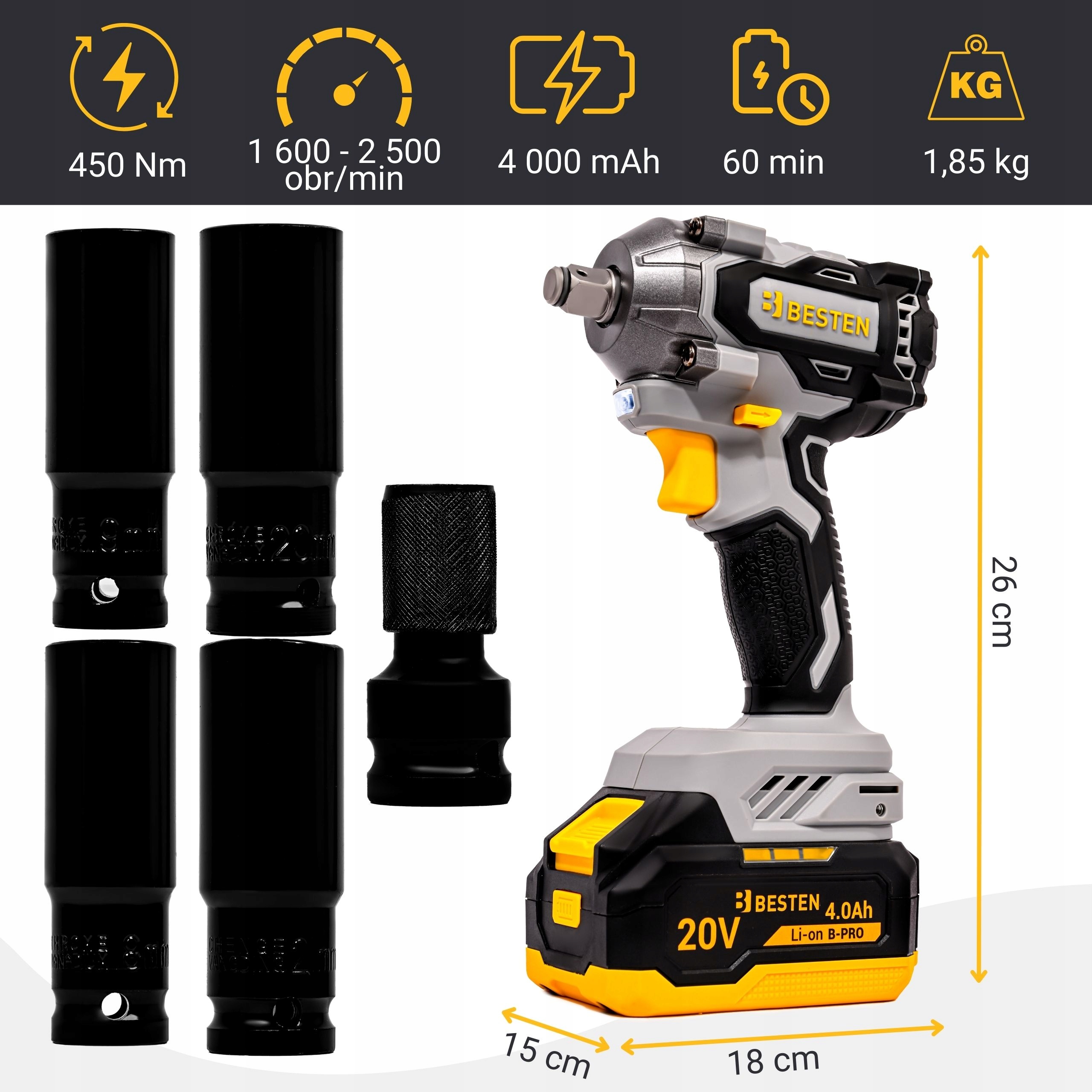 BESTEN 450Nm to realna moc, precyzja i bezpieczeństwo, bez przepłacania za „zawyżone” parametry, które i tak nie są wykorzystywane w codziennej pracy.
