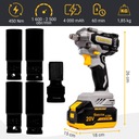 Pełen zestaw dodatków – walizka, adapter, nasadki udarowe 18/19/20/21 mm. Od razu po rozpakowaniu możesz rozpocząć pracę – wszystkie niezbędne akcesoria są w komplecie.