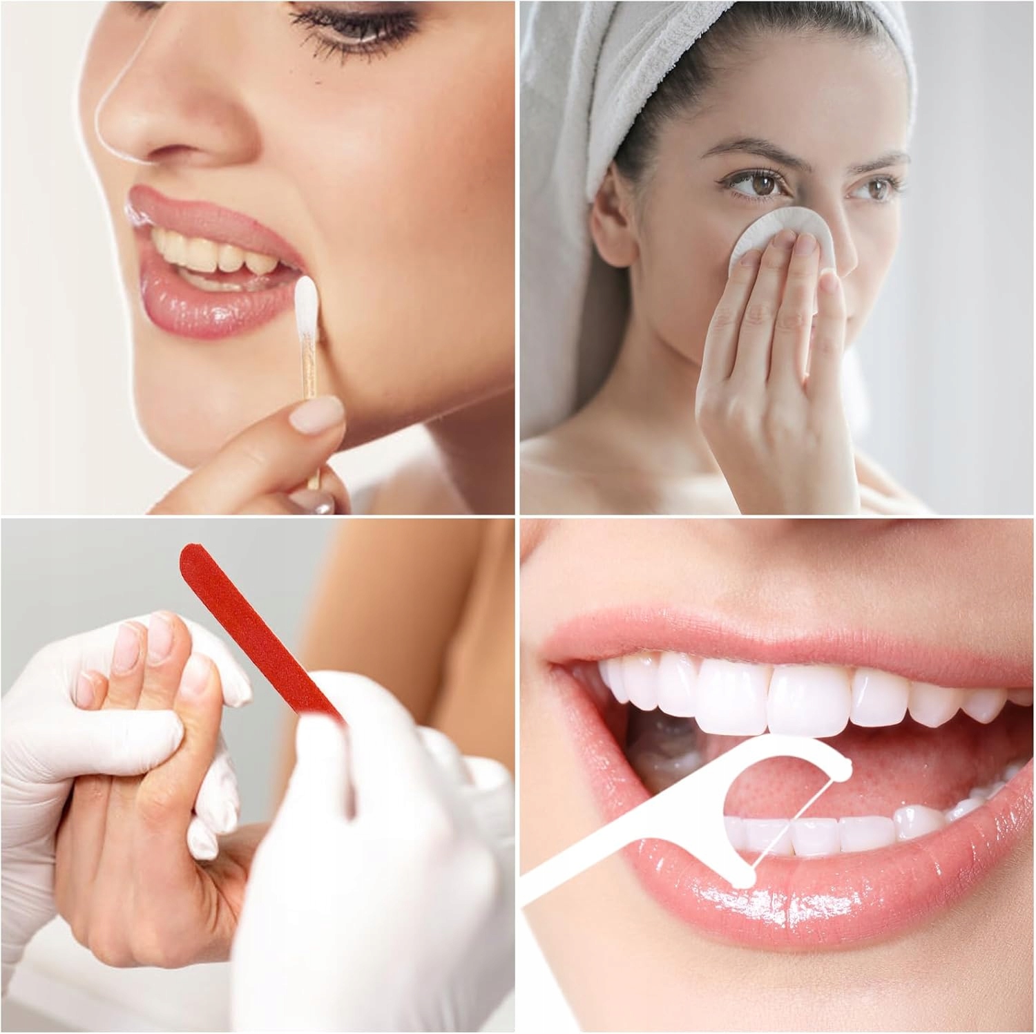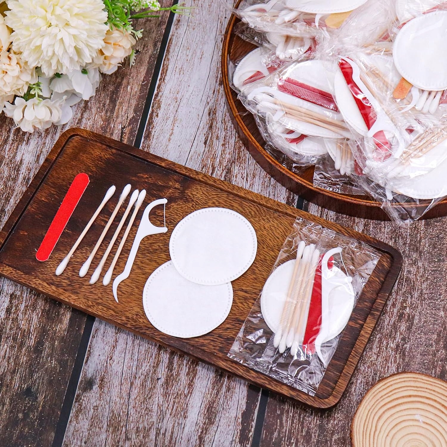 ROZMIAR: podkładki kosmetyczne do udogodnień hotelowych mają średnicę 5,6 cm, waciki bawełniane mają 7,4 cm długości, pilniki do paznokci mają 7 cm długości, a nić dentystyczna ma 7,9 cm długości. Każdy rozmiar sprawia, że jesteś bardziej odpowiedni w użyciu.