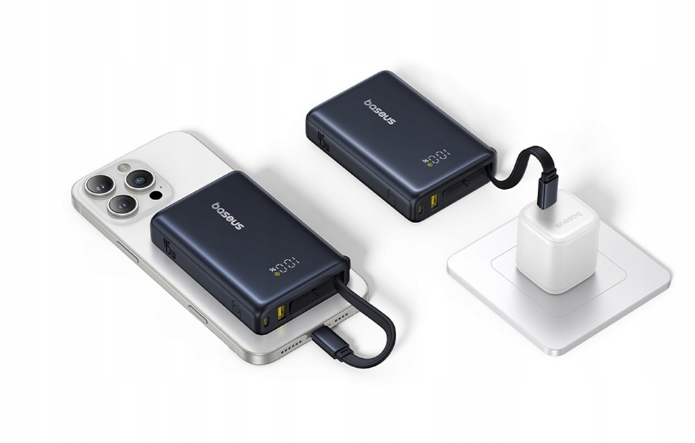 Baseus PicoGo wyróżnia się smukłą konstrukcją oraz eleganckim wykończeniem w białym kolorze. Jest lekki i łatwy do przenoszenia, co doskonale sprawdza się podczas podróży, w pracy czy na uczelni. Mimo kompaktowych wymiarów urządzenie zapewnia wyjątkową wydajność i niezawodność.