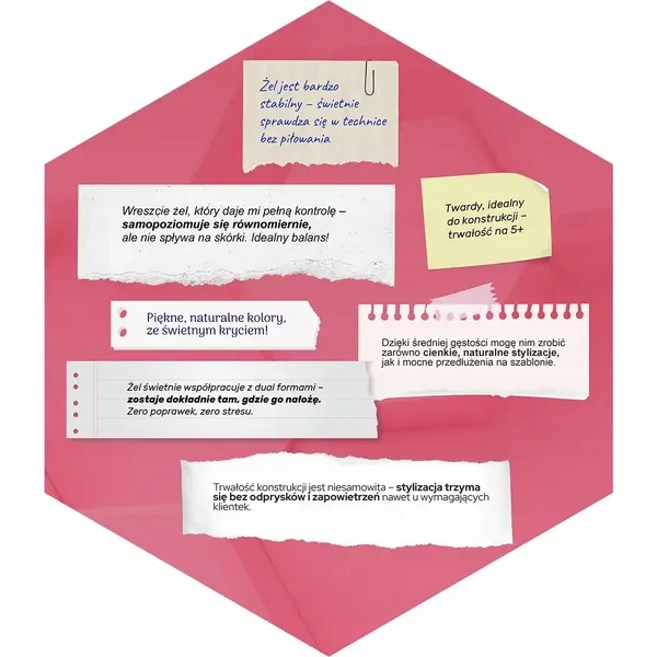 - Wszechstronny – przedłużania na szablonach, dual formach, a także do klasycznego uzupełniania paznokci