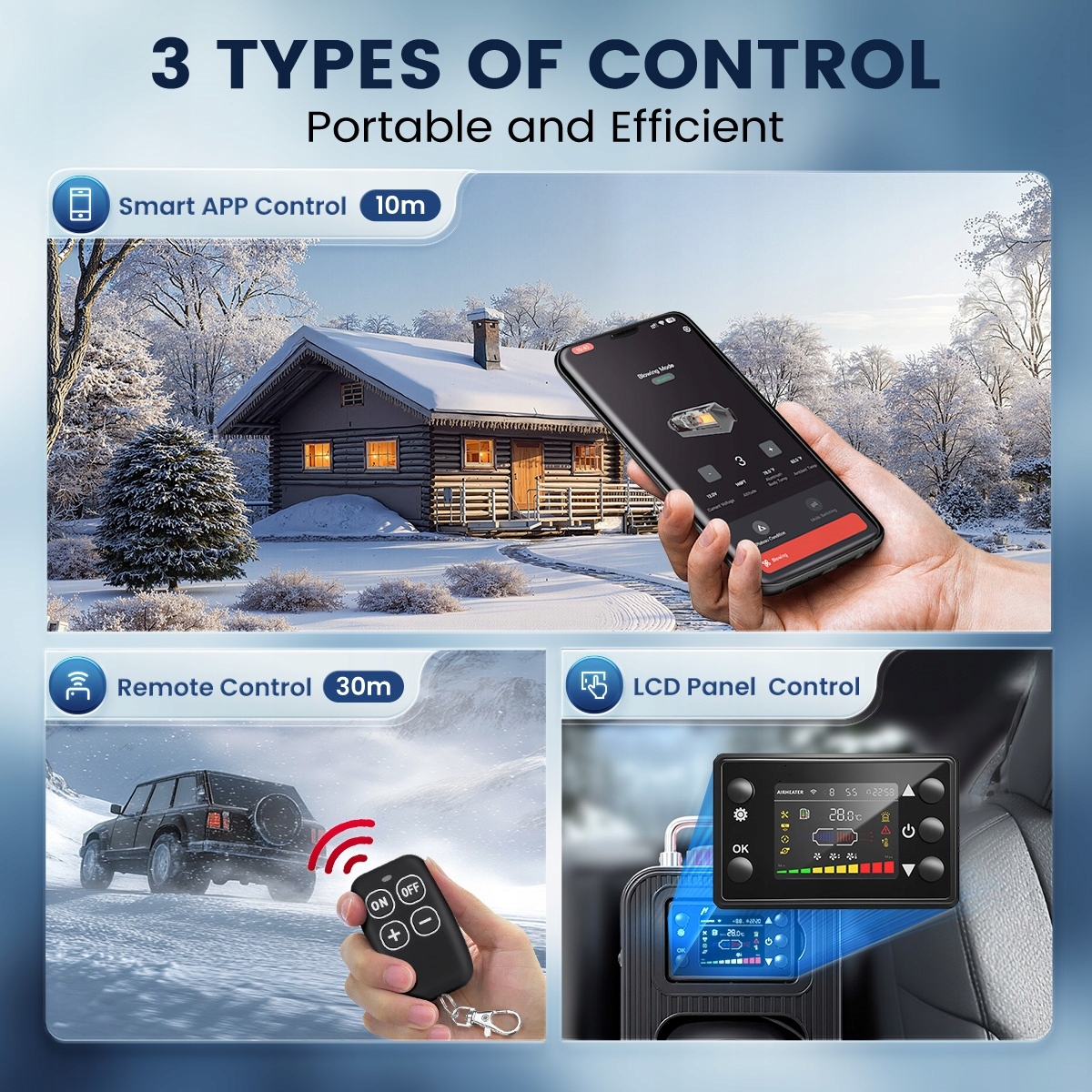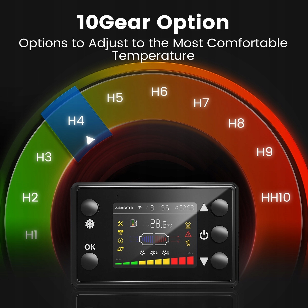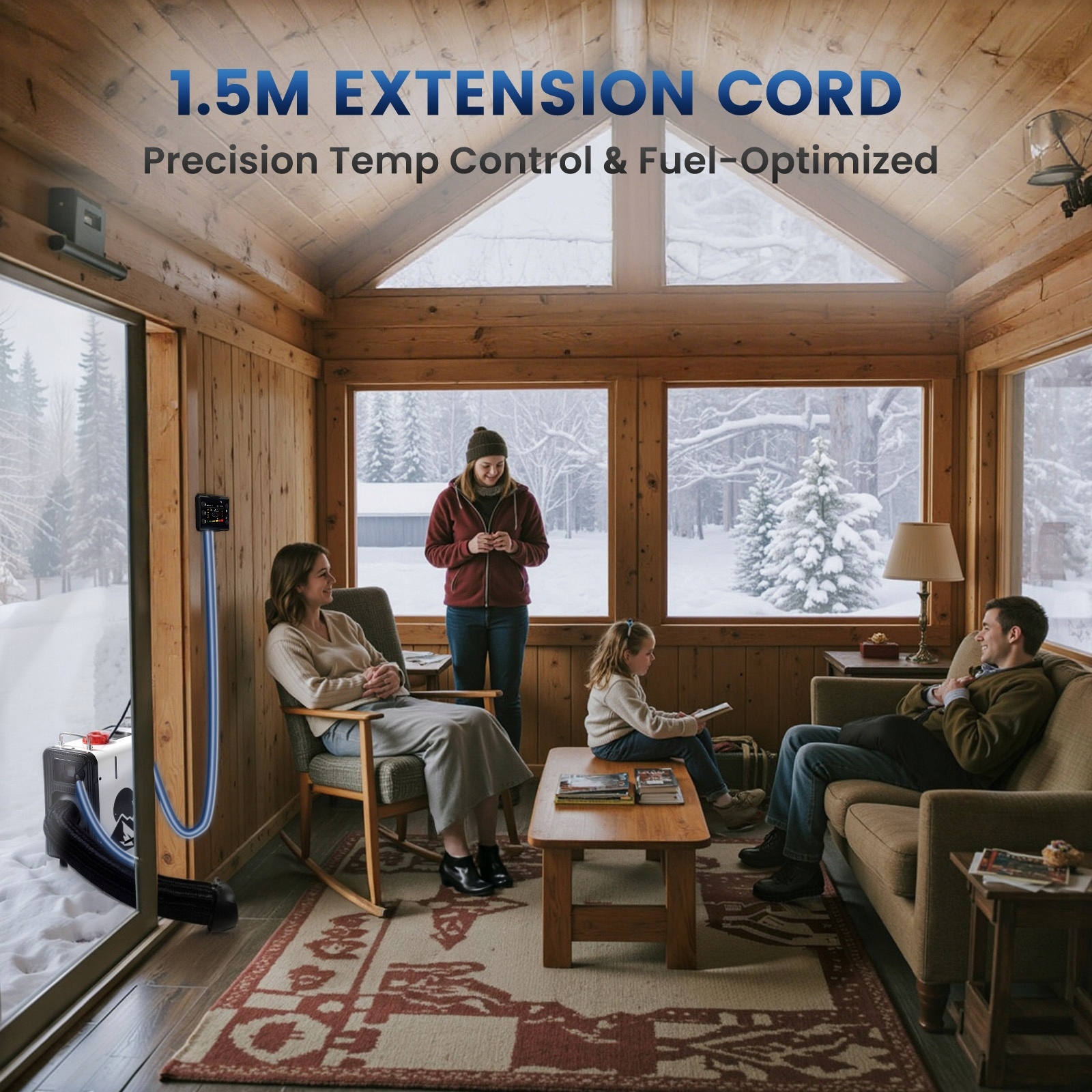 【Sterowanie klimatyzacją wewnętrzną】Ogrzewacz diesla jest wyposażony w 1,5-metrowy przedłużacz, który umożliwia montaż panelu sterowania w pomieszczeniu, ułatwiając dostęp i obsługę. Dzięki precyzyjnemu pomiarowi temperatury wewnętrznej, ogrzewacz diesla 12 V dostosowuje swój tryb pracy i inteligentnie włącza i wyłącza się. To nie tylko znacznie poprawia efektywność ogrzewania, ale także eliminuje potrzebę częstej regulacji temperatury zewnętrznej, co radykalnie zmniejsza zużycie paliwa, zapewniając oszczędność energii i kosztów.