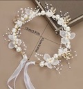 Delikatna wstążka do wiązania nadają wiankowi wyjątkowego charakteru. Idealnie wpasuje się do upiętych oraz rozpuszczonych włosów.