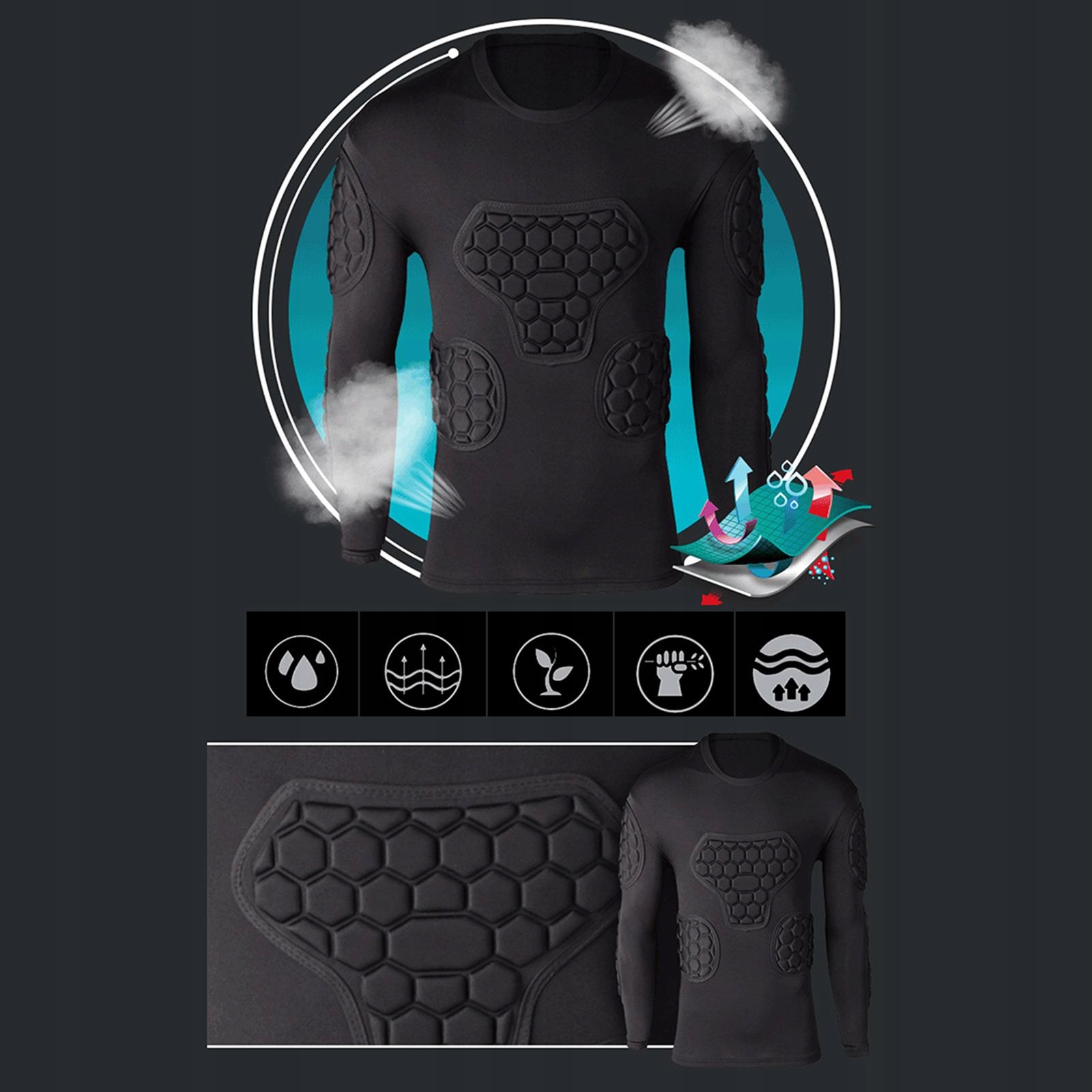 [Kompleksowa ochrona]: Ta wyściełana koszulka sportowa EVA ma zwiększoną grubość w obszarach, w tym w okolicy śledziony piersiowej i łokcia, co zapewnia pełną ochronę przed uderzeniami