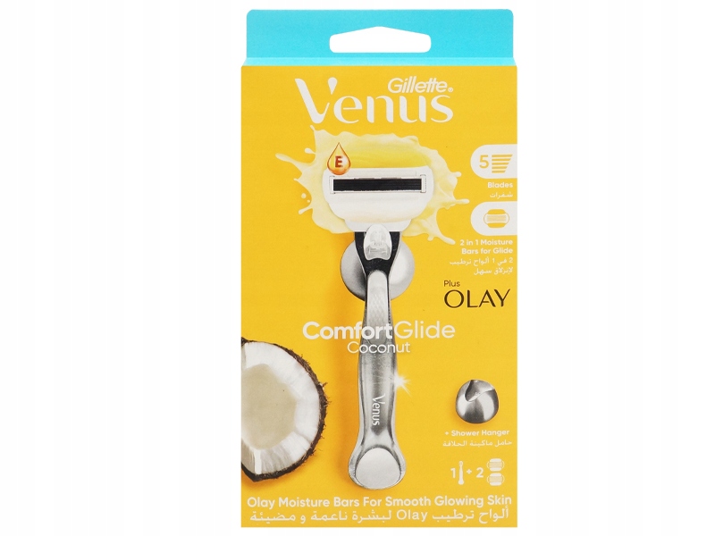 Ostrza maszynki do golenia dla kobiet Venus zostały zaprojektowane z myślą o kobiecym ciele. Maszynka do golenia dla kobiet Venus Comfortglide Coconut plus Olay ma 5 ostrzy, które zapewniają gładkie i dokładne golenie na dłużej. Wkłady wymienne do maszynki do golenia są wyposażone w paski nawilżające Olay, które uwalniają balsam do ciała o delikatnym kokosowym zapachu, ułatwiając poślizg i zapewniając komfort. Obrotowa konstrukcja dopasowuje się do konturów ciała. Wkłady wymienne Venus pasują do wszystkich rączek maszynek do golenia Venus (z wyjątkiem Simply Venus i Venus do golenia włosów łonowych i skóry).