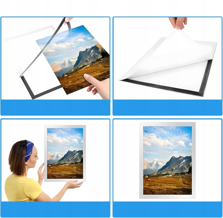 ◾Nie potrzebujesz żadnych narzędzi, wystarczy odkleić papier ochronny od tyłu, przykleić go do płaskiej powierzchni i umieścić plakat lub zdjęcie w środku.