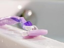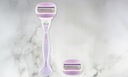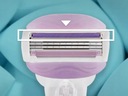 3 ostrza zapewniają gładkie golenie, a elastyczne paski żelowe uwalniają masło do ciała, zapewniając poślizg i komfort.