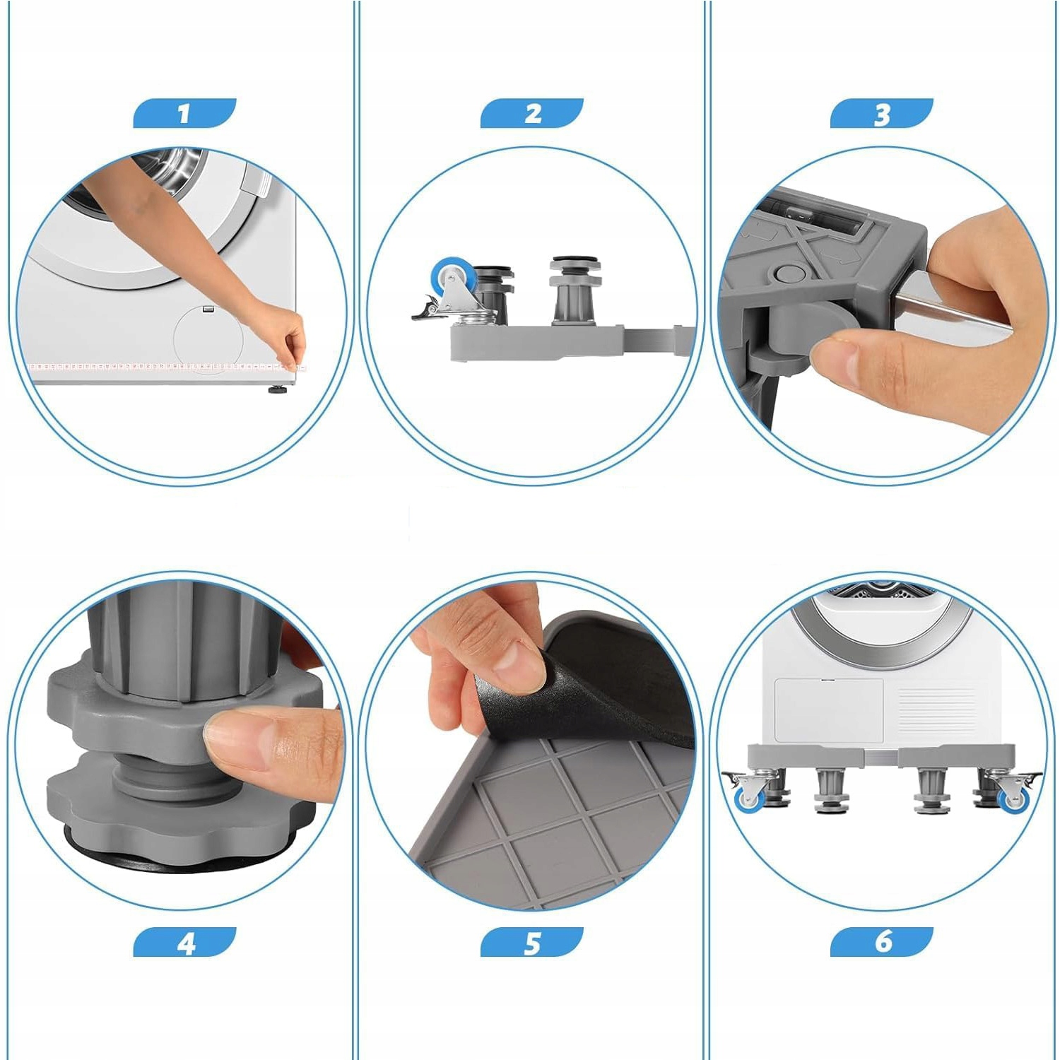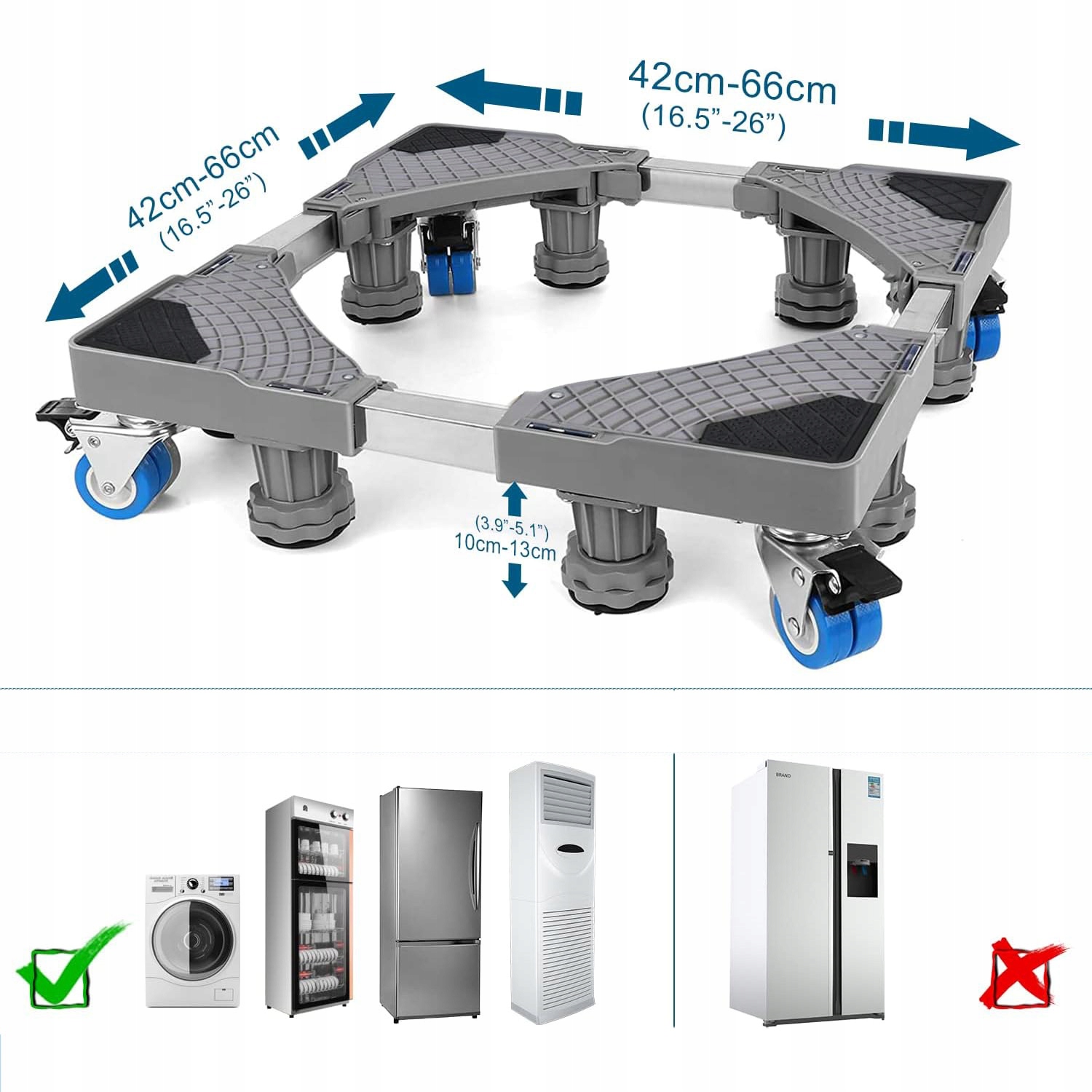 ✨ MOBILNY STOJAK Z 4 KÓŁKAMI, 8 NÓŻKAMI PODNOSZĄCYMI, REGULOWANY, 42-66 CM, DO PRALKI, SUSZARKI, ZAMRAŻARKI✨