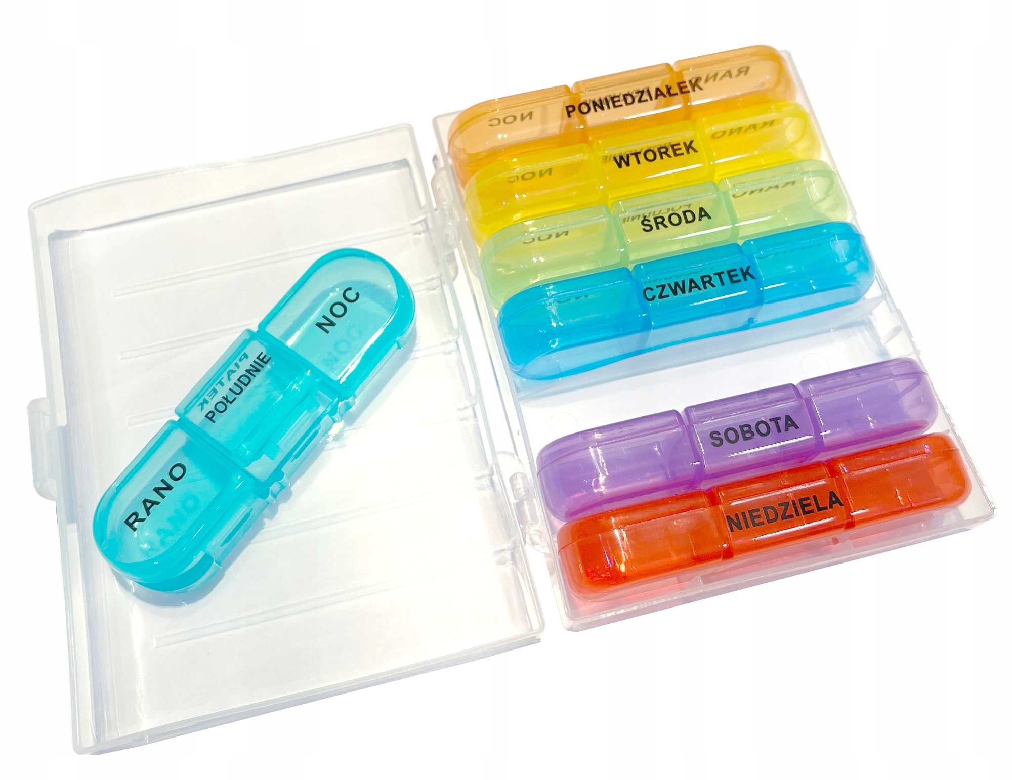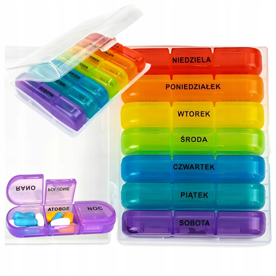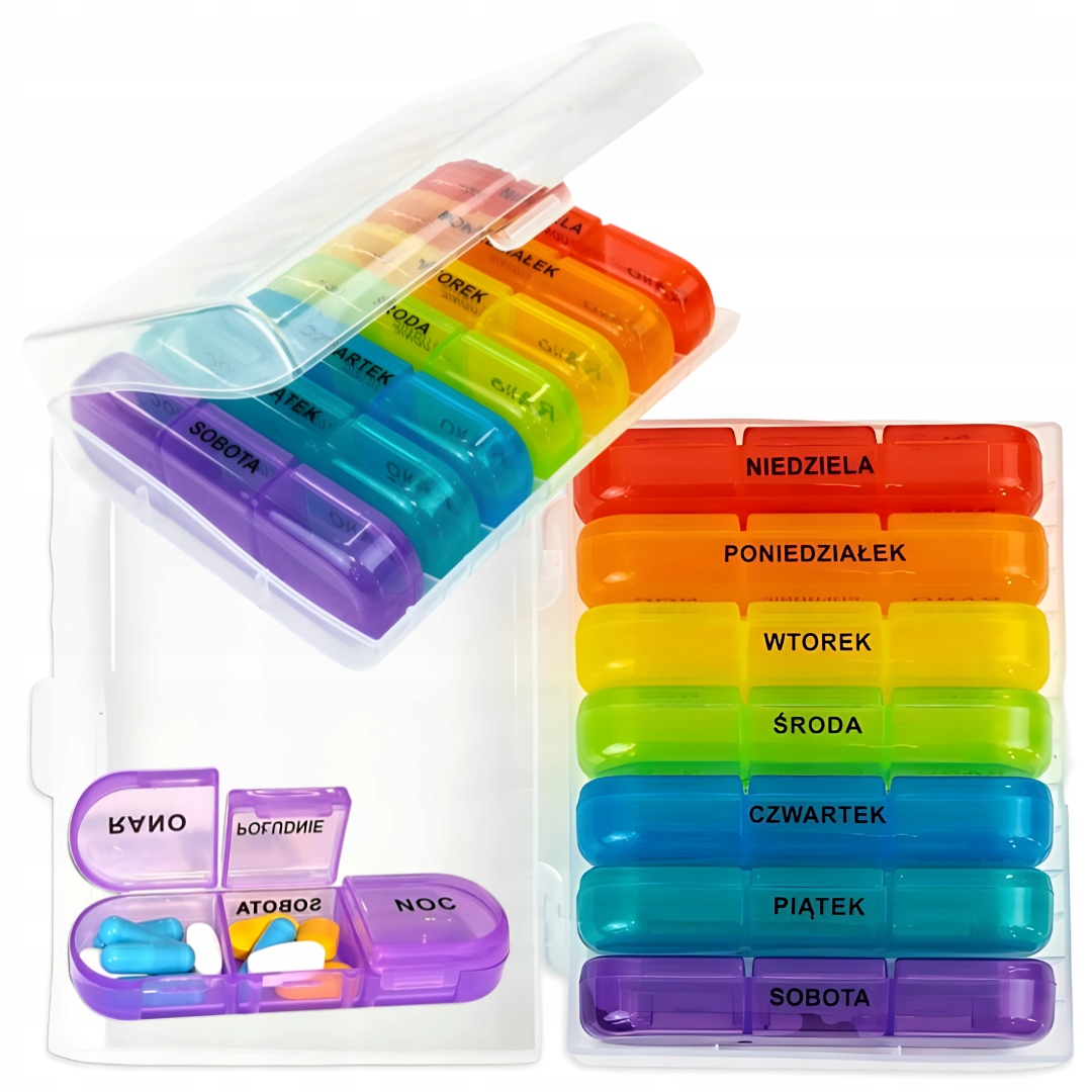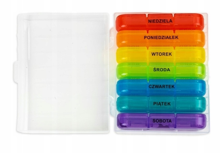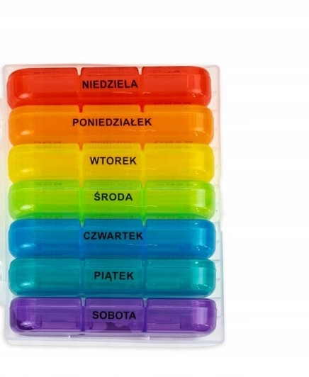 ✅ Kolorowe pudełeczka – łatwe rozróżnianie dni tygodnia.