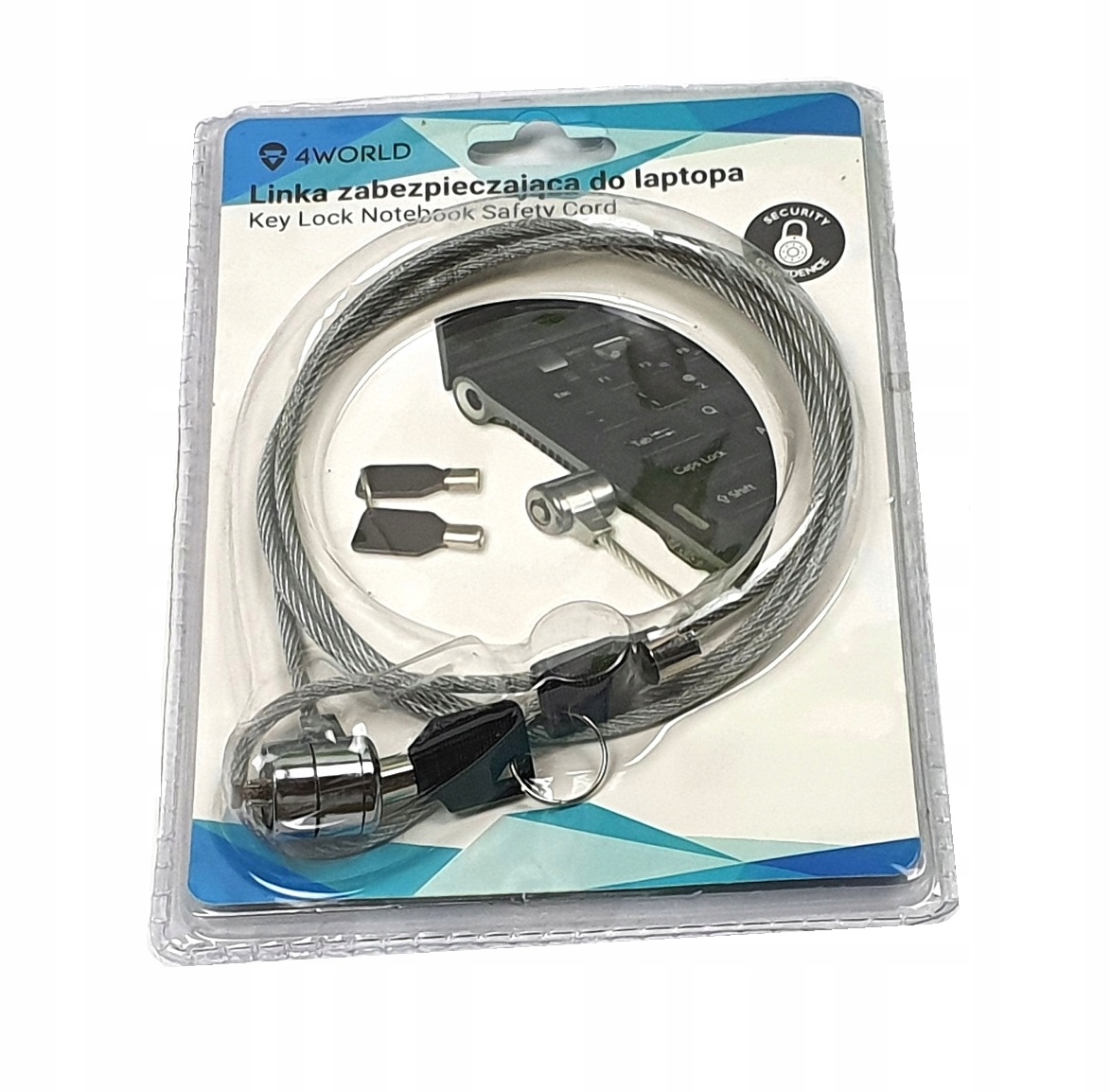 Linka stalowa o długości 1,8 m; umożliwia łatwe podłączenie do dowolnego notebooka wyposażonego w gniazdo zabezpieczające.