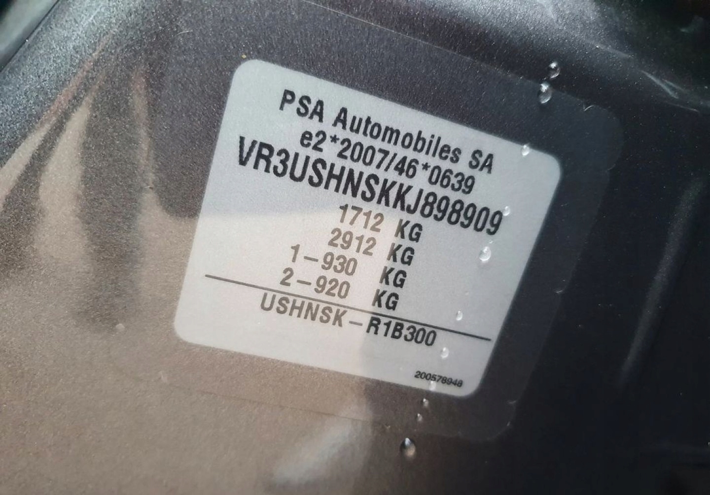 VIN-номер VR3USHNSKKJ8989xx