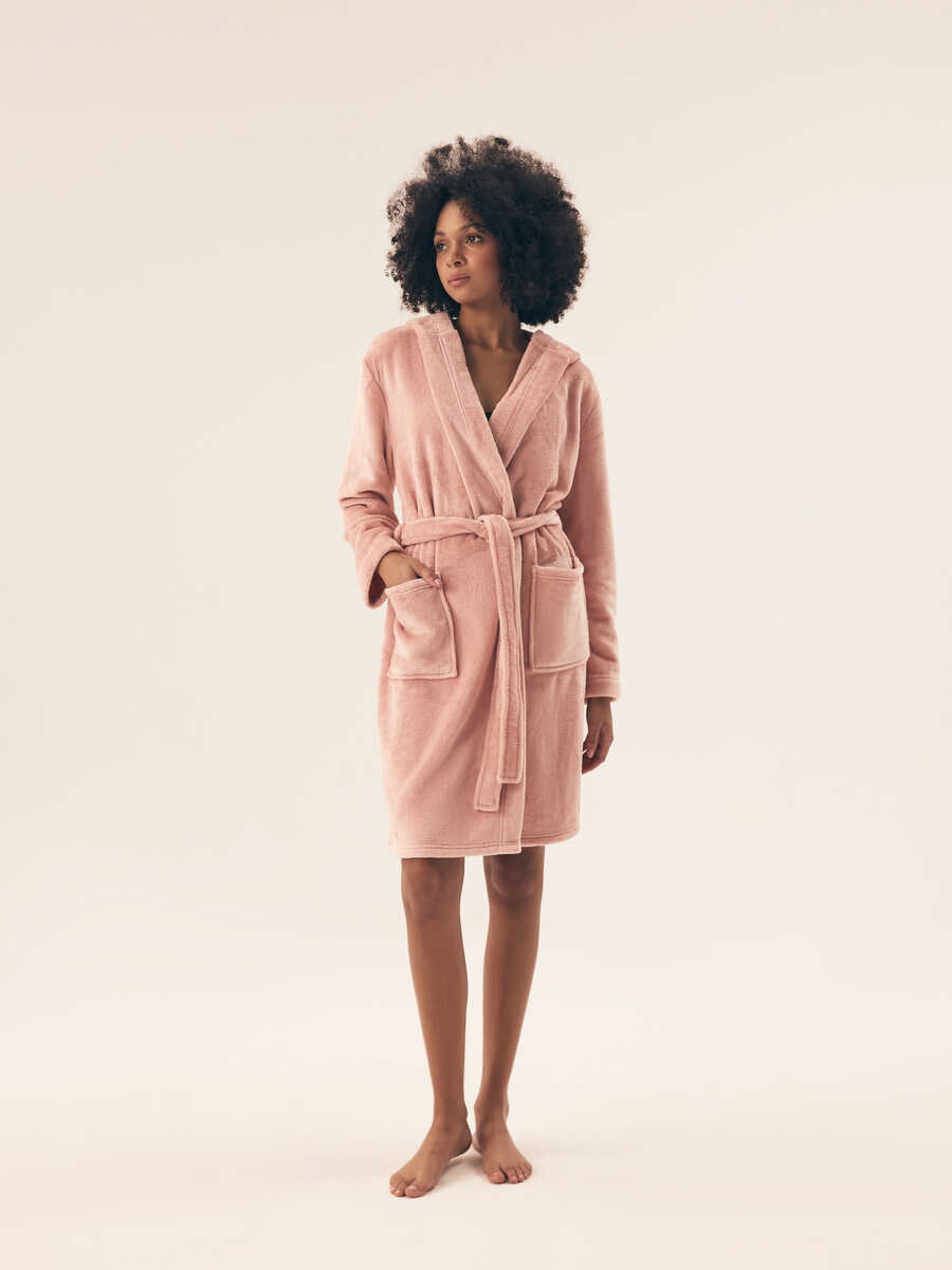 Poznaj polarowy damski szlafrok HENDERSON BIRD w kolorze różowym. Obszerny kaptur, długie rękawy i dwie głębokie kieszenie sprawiają, że jest nie tylko wygodny, lecz także praktyczny. Dołączony pasek pozwala regulować jego szerokość. To miękki szlafrok, który zapewni komfortowy relaks i świetnie się sprawdzi podczas chłodniejszych pór roku.