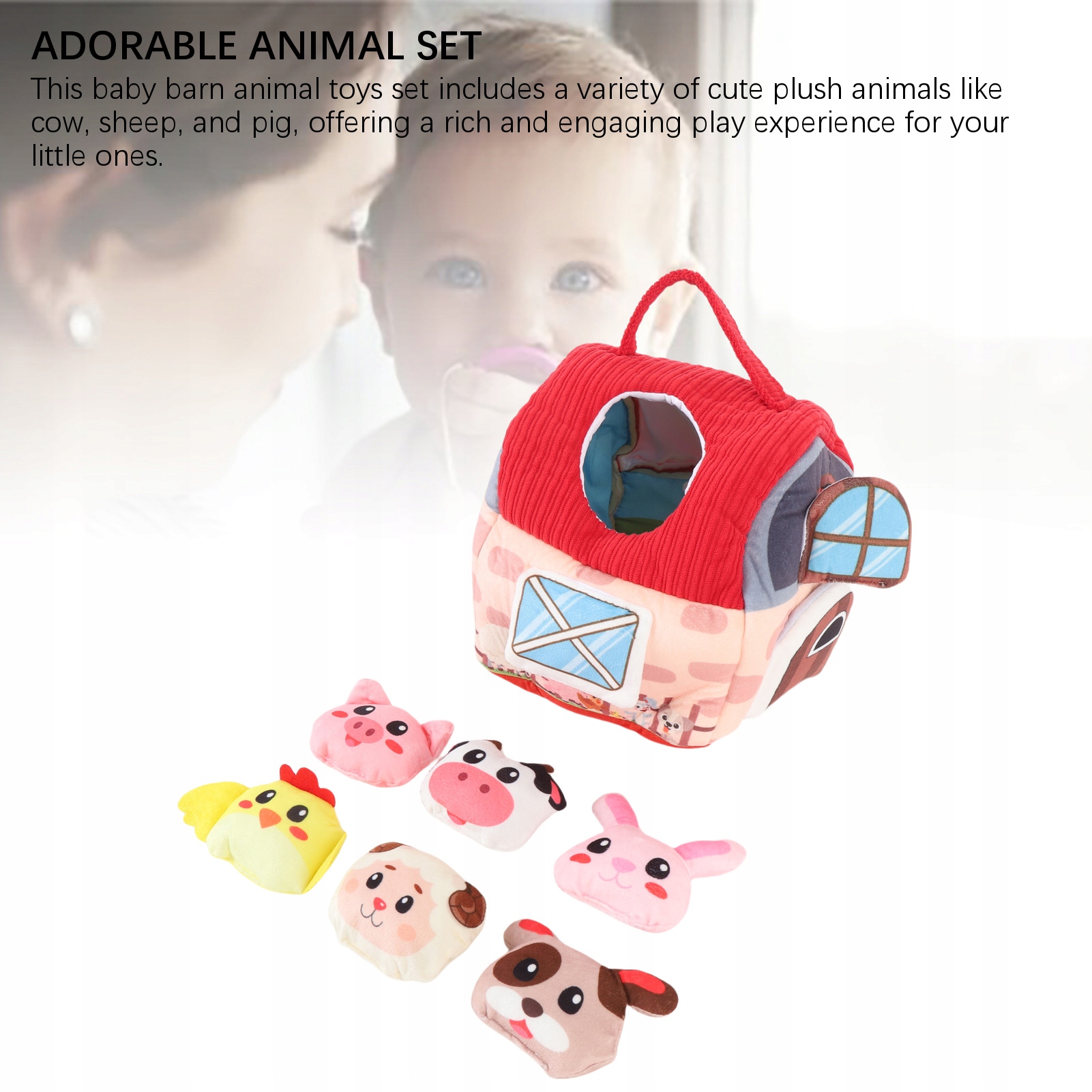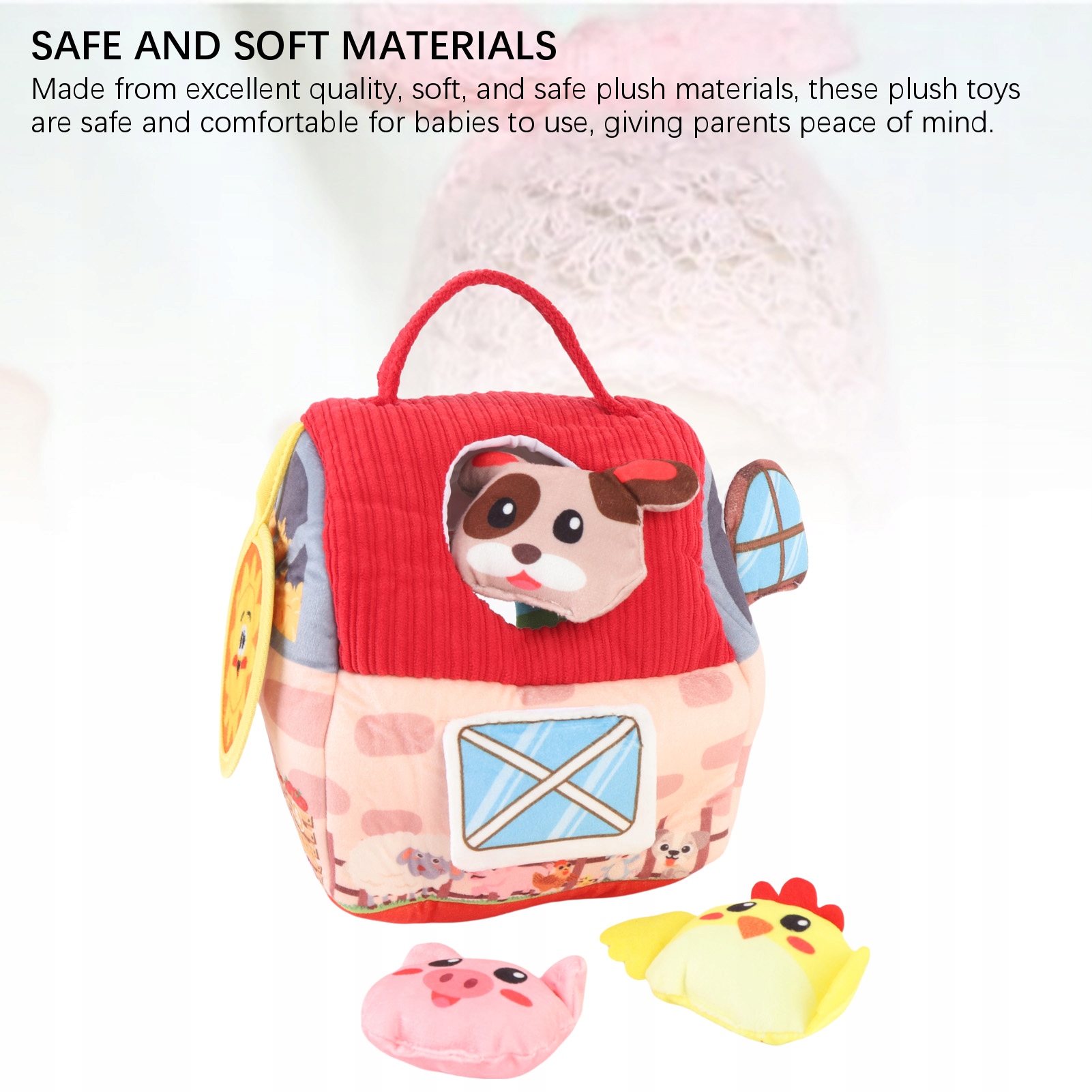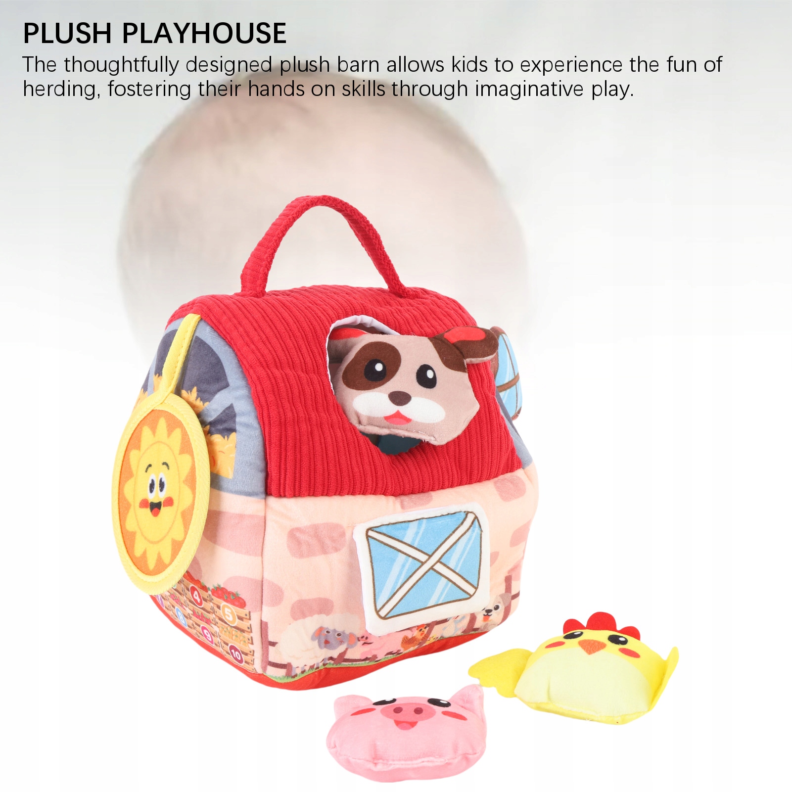 3. Plush Playhouse: Zaramowa zaprojektowana pluszowa stodoła pozwala dzieciom doświadczyć zabawy z hodowli, wspierając swoje ręce na umiejętności poprzez pomysłową zabawę.