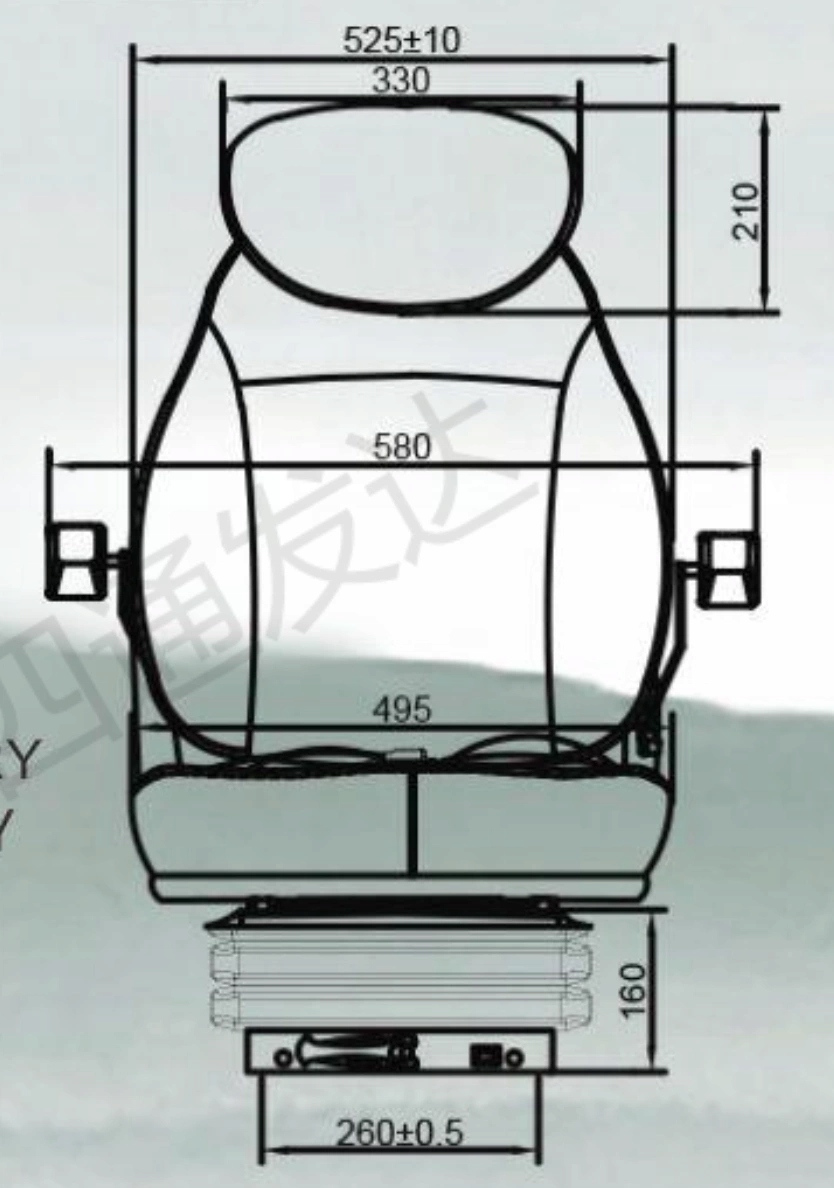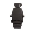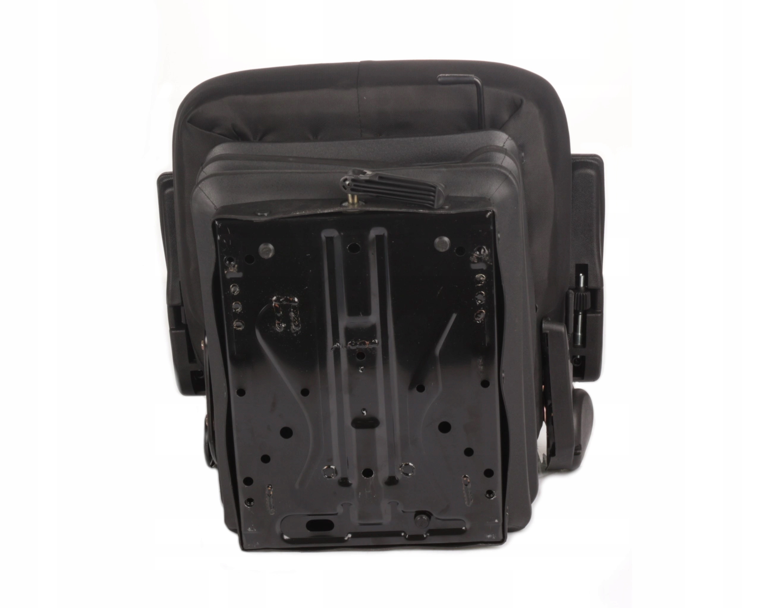 Komfortowe siedzenie do ciągnika, wózka widłowego, koparki, ładowarki amortyzowane mechanicznie z podłokietnikami oraz regulowanym zagłówkiem. Siedzenie nadaje się szczególnie do ciągników, maszyn rolniczych, wózków widłowych oraz maszyn budowlanych. Dzięki dźwigni mamy możliwość regulacji przesuwu fotela w przód i do tyłu. Obicie wykonane jest z czarnego estetycznego materiału, wytrzymałego i łatwego w utrzymaniu czystości, a siedzisko i oparcie z grubej i komfortowej gąbki. Dodatkowym atutem są podnoszone podłokietniki z możliwością regulacji kąta nachylenia zwiększające komfort dla operatora. Dzięki dźwigni umieszczonej z boku fotela możemy w łatwy sposób zmienić kąt nachylenia oparcia w stosunku do siedziska. Siedzenia posiada automatycznie zwijany biodrowy pas bezpieczeństwa oraz regulowany zagłówek.