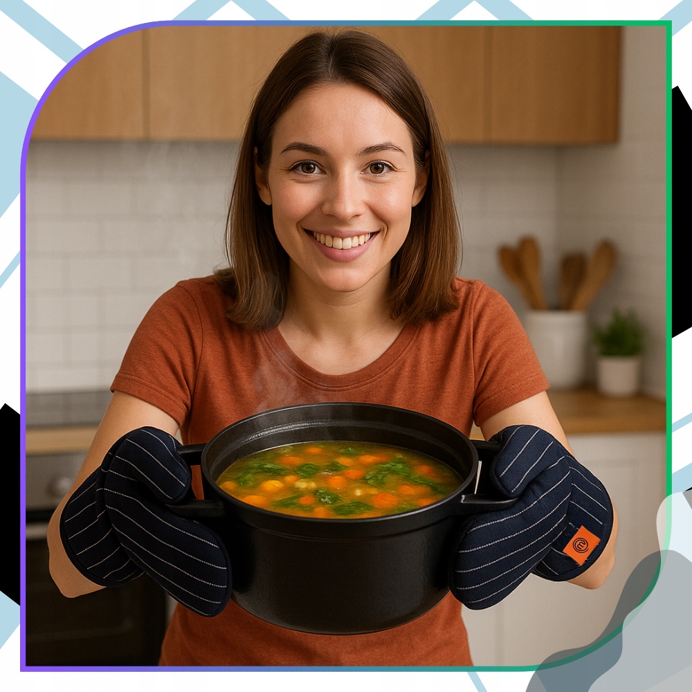 ✅ W skład zestawu wchodzą 2 rękawice kuchenne oraz 2 podkładki kuchenne, które tworzą kompletny komplet ochronny do każdej kuchni. Rękawice umożliwiają bezpieczne przenoszenie gorących naczyń, blach i garnków obiema rękami, co znacząco zwiększa komfort podczas pracy przy piekarniku czy kuchence. Podkładki natomiast pełnią podwójną funkcję – służą jako łapki do chwytania gorących naczyń, a jednocześnie jako podstawki, które chronią blat i stół przed uszkodzeniami spowodowanymi wysoką temperaturą.