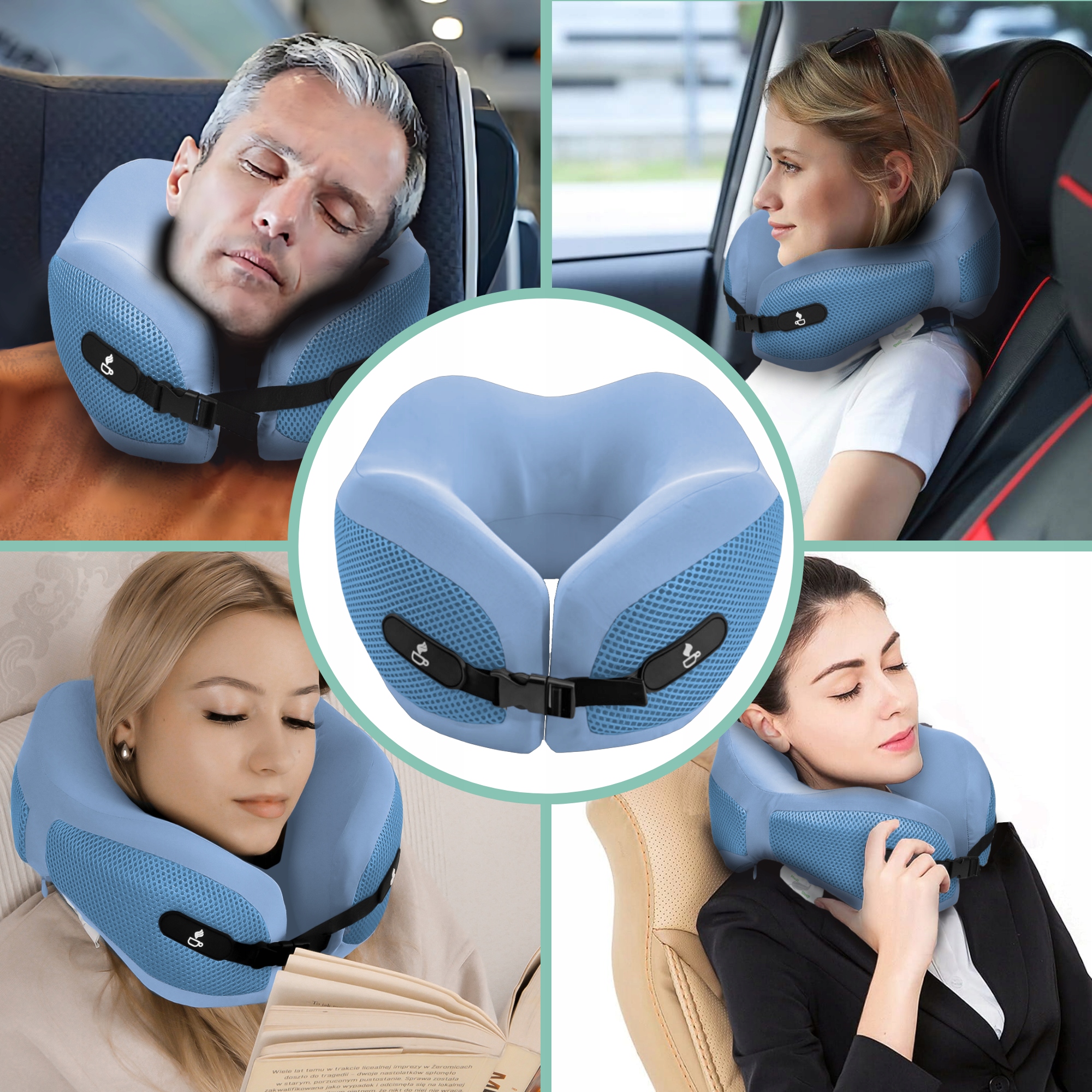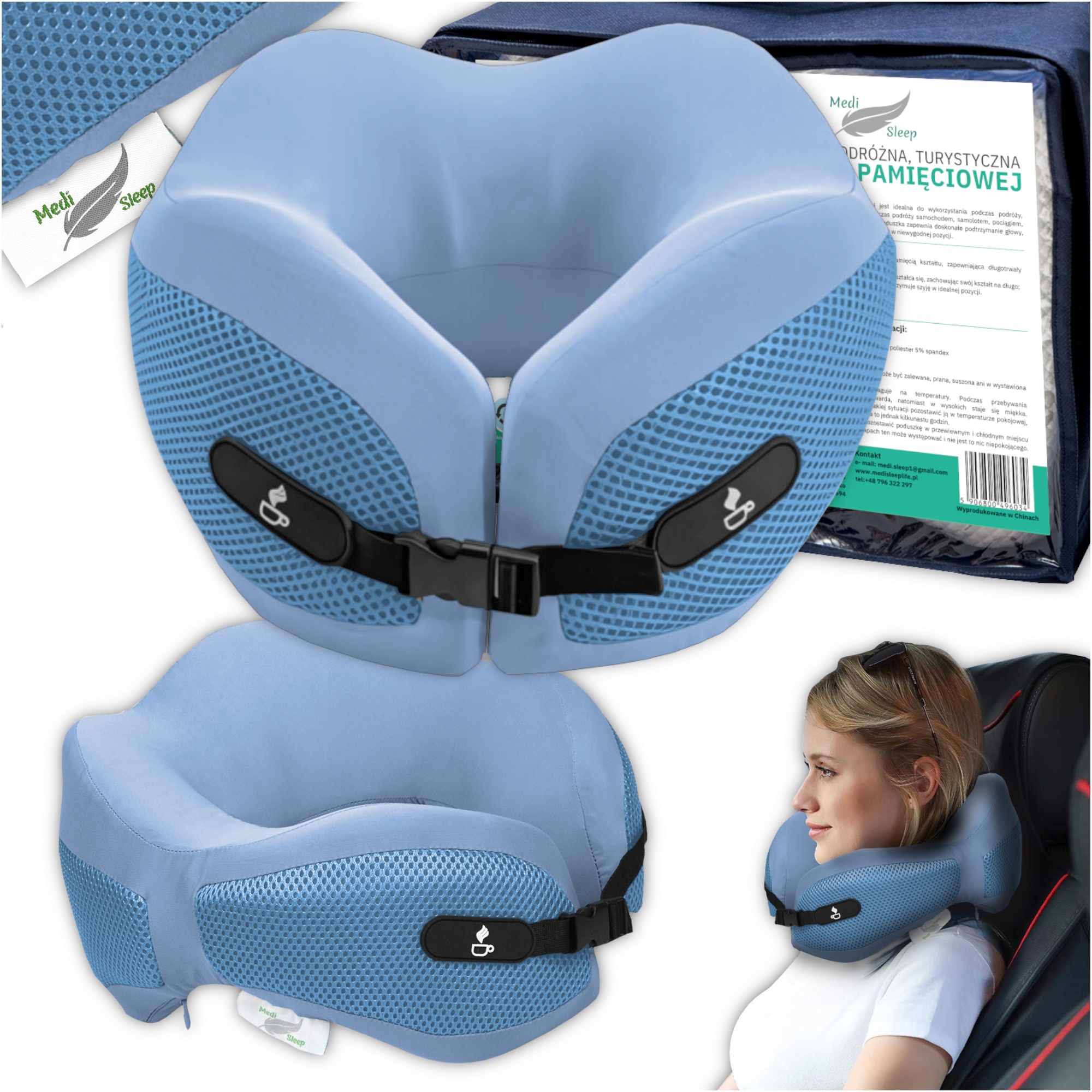 ✔️ Poduszkę podróżną z poszewką na poduszce.