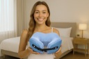 Poduszka stworzona w taki sposób by doskonale podtrzymywać boki głowy (wypięcie do góry). Posiada innowacyjny design i kształt co powoduje że doskonale przylega do szyi.