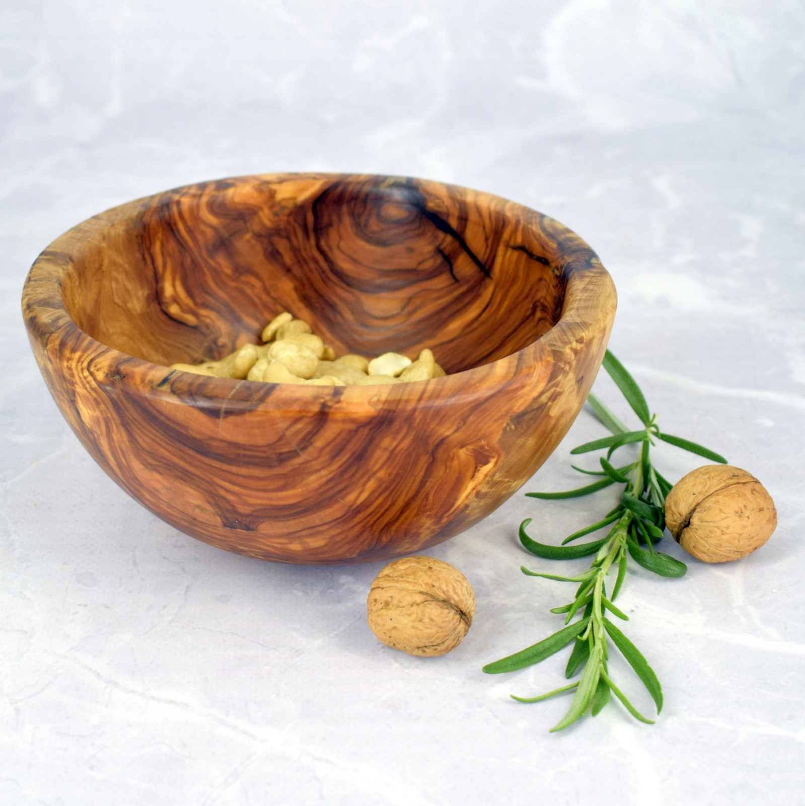 Ręcznie wykonana miska 16 cm z drewna oliwnego, idealna na przekąski, orzechy czy oliwki. Sprawdzi się zarówno w kuchni, jak i jako element dekoracyjny w salonie czy jadalni. Jej wyjątkowe usłojenie i ciepła kolorystyka dodają wnętrzu naturalnego uroku.