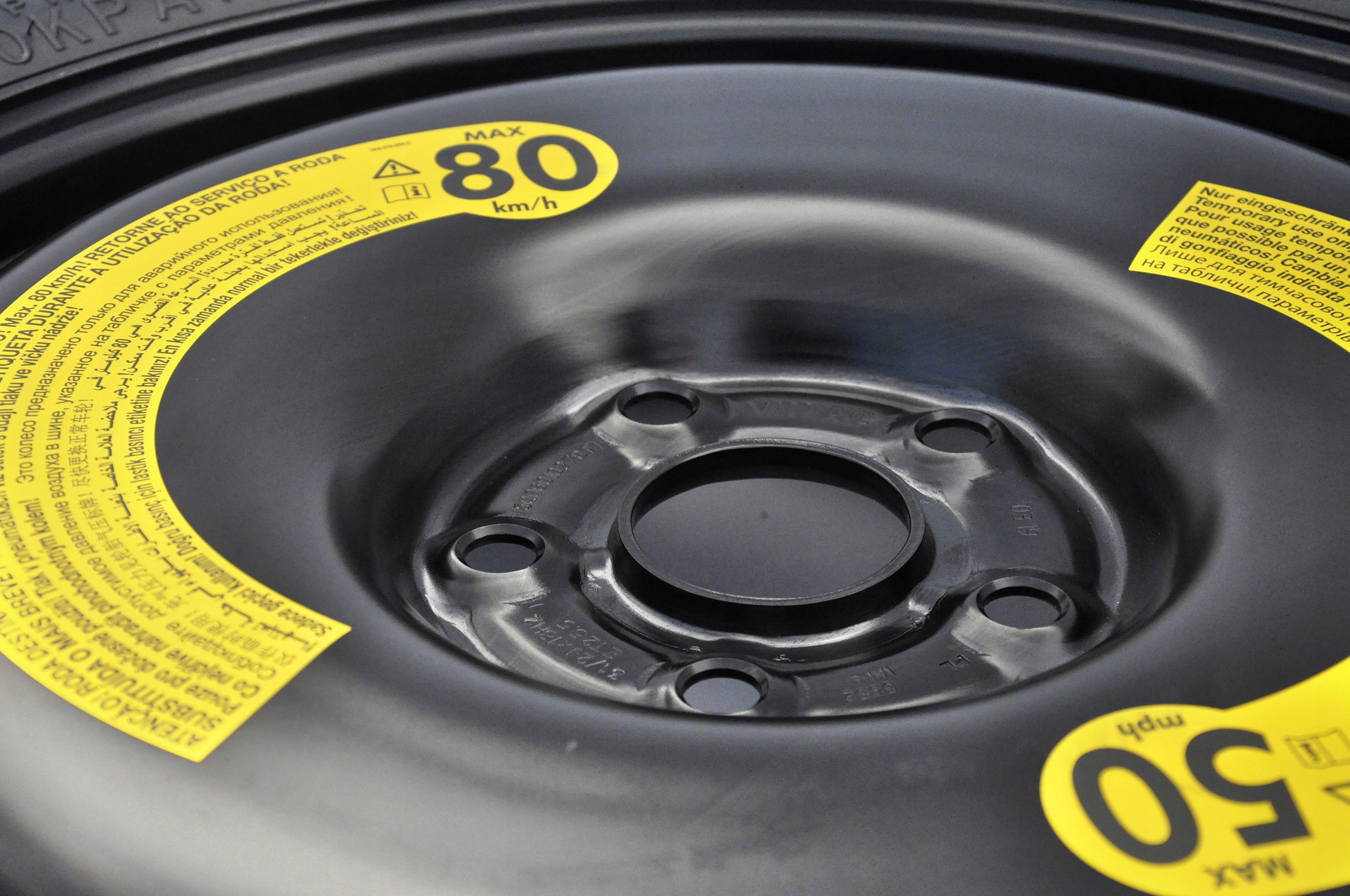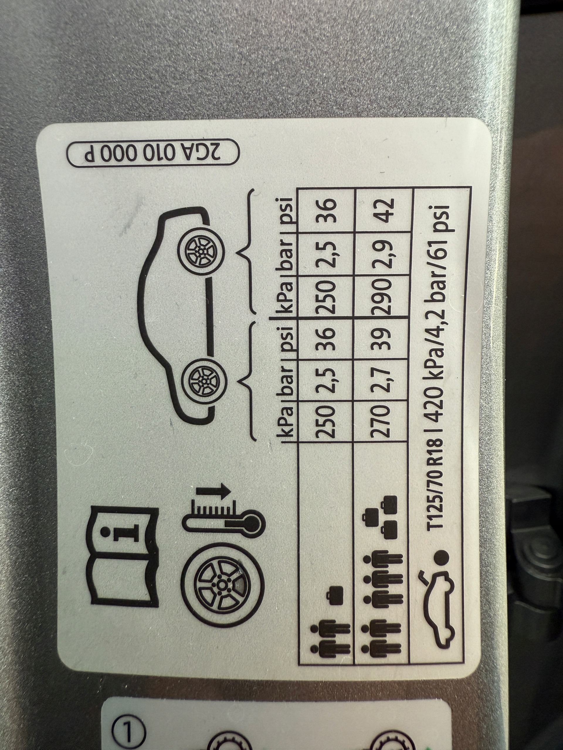 Informacja o rozmiarze koła dojazdowego w samochodzie marki VW ARTEON umieszczona jest na słupku od kierowcy.