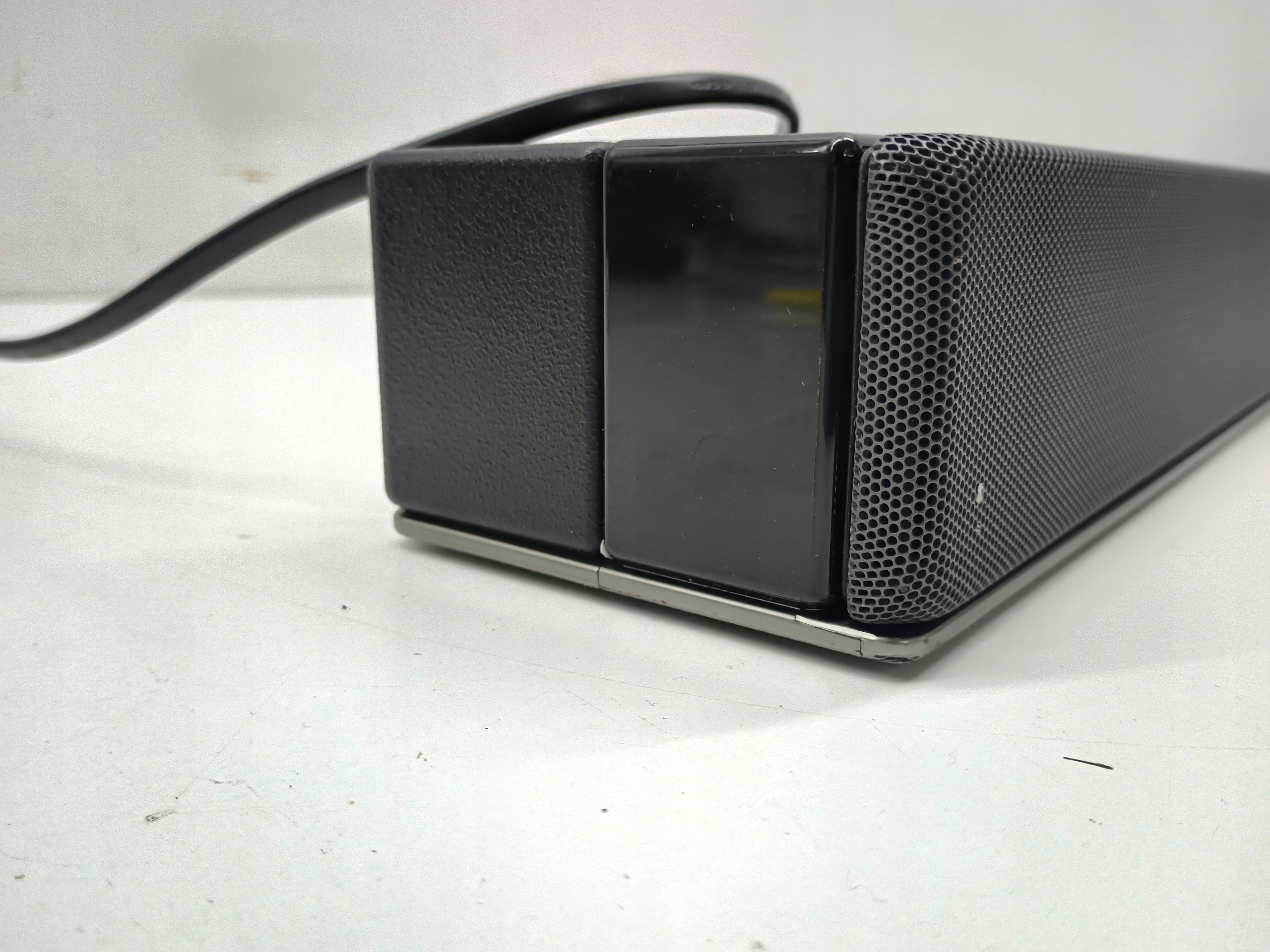 STAN TOWARU: POWYSTAWOWY, DOKŁADNIE SPRAWDZONY PRZEZ AUTORYZOWANY SERWIS, 100% SPRAWNY, STAN TECHNICZNY I WIZUALNY BARDZO DOBRY, SUBWOOFER MA PROBLEMY Z POŁĄCZENIEM SIĘ Z SOUNDBAREM, POSIADA LEKKIE RYSKI ORAZ WGNIECENIE NA DOLE SUBWOOFERA (widoczne na zdjęciach), ZESTAW KOMPLETNY, ZAŁĄCZONE WYPOSAŻENIE DOKŁADNIE UKAZANE NA REALNYCH ZDJĘCIACH, INSTRUKCJI OBSŁUGI, OPAKOWANIE ORGINALNE.