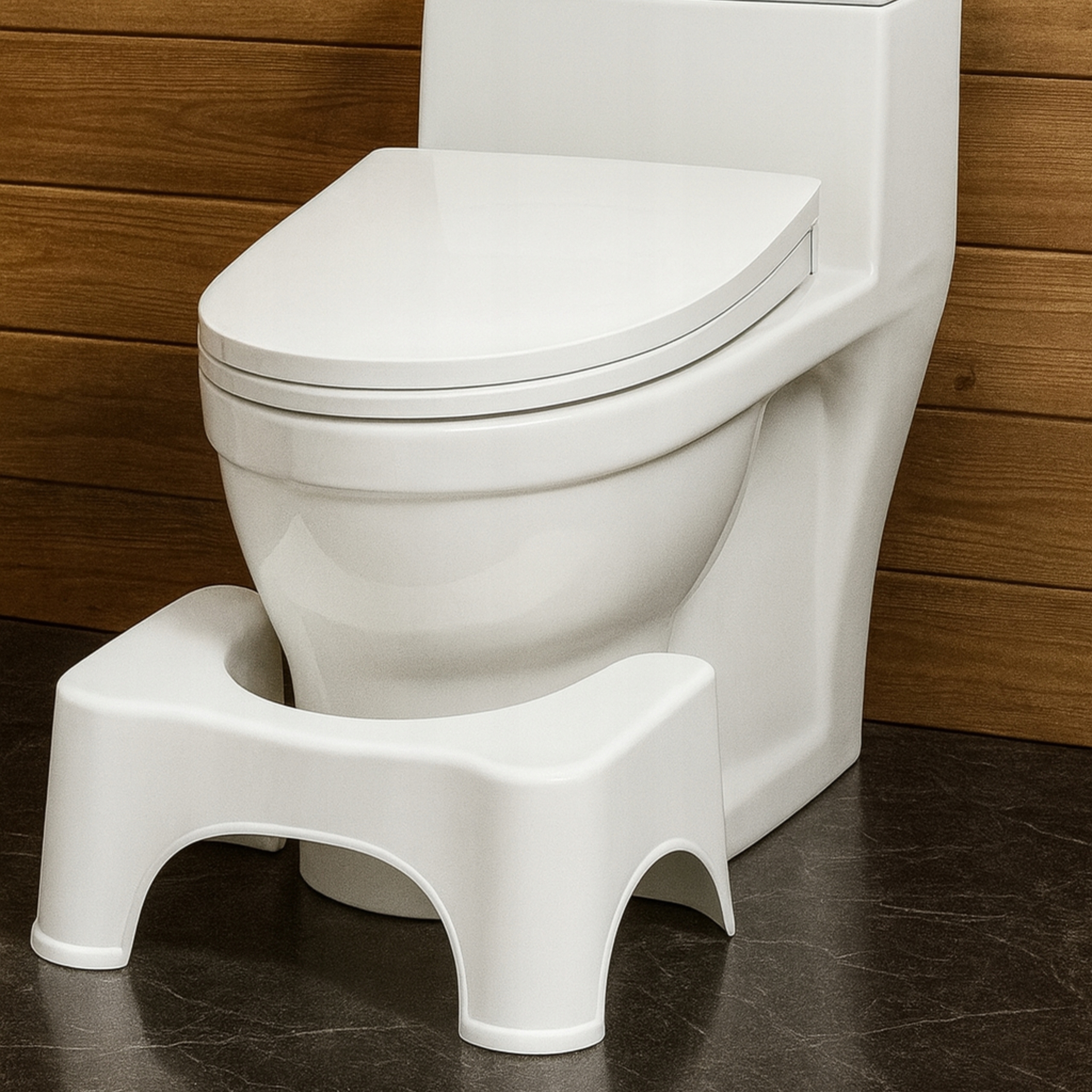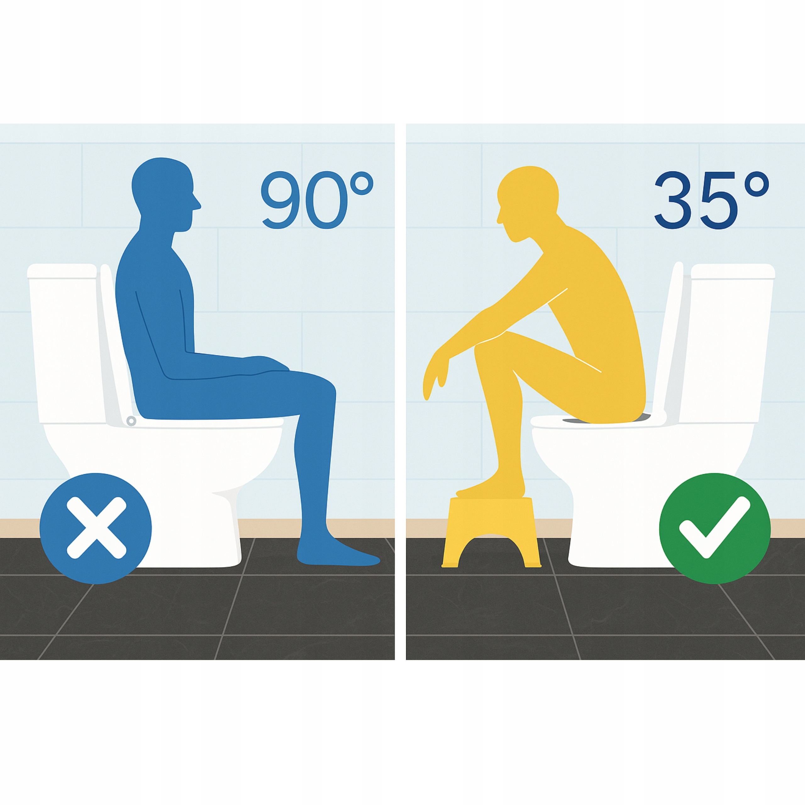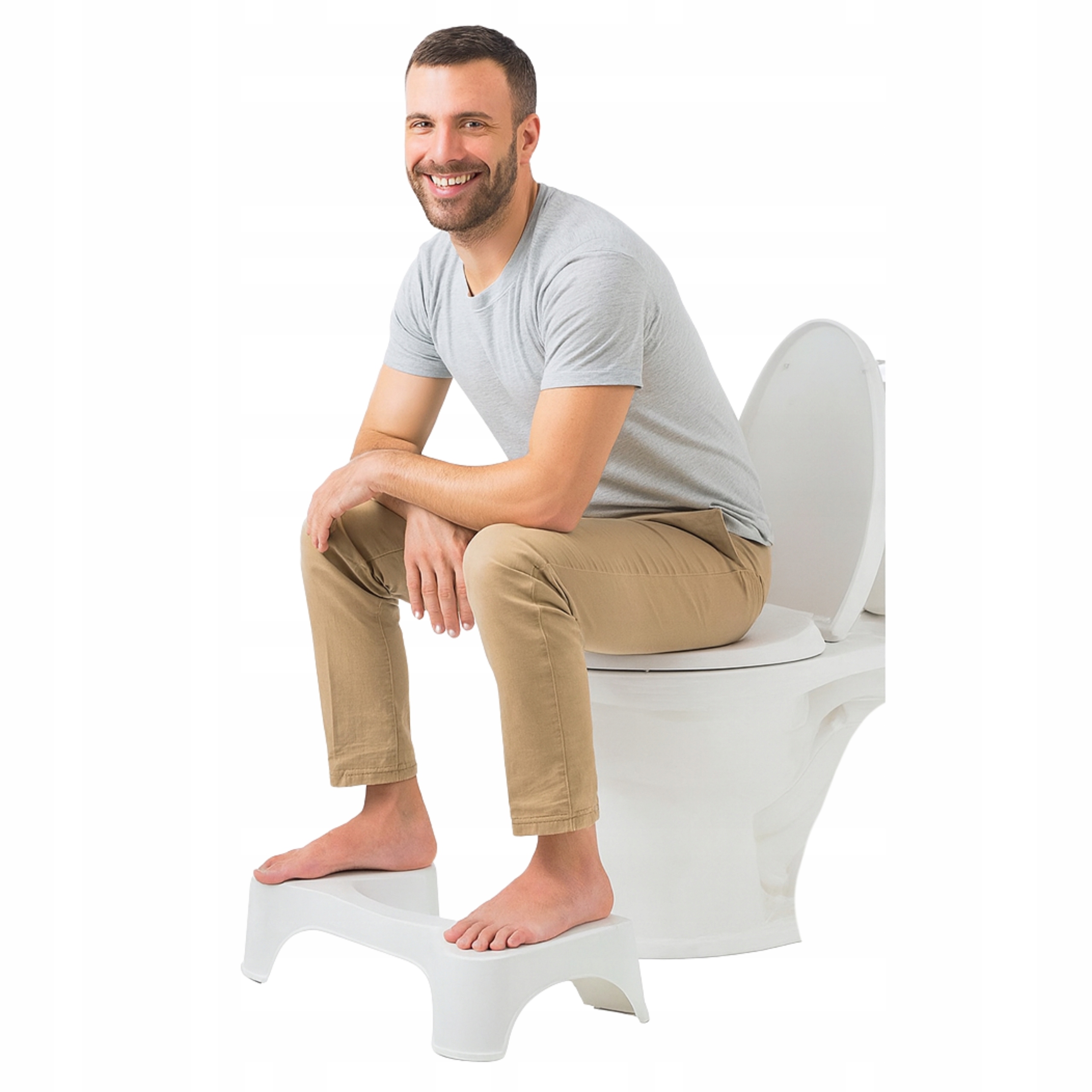 Podnóżek ustawia ciało pod kątem około 35°, co sprzyja pełnemu rozluźnieniu mięśni i ułatwia wypróżnianie. To szczególnie pomocne przy zaparciach czy hemoroidach.